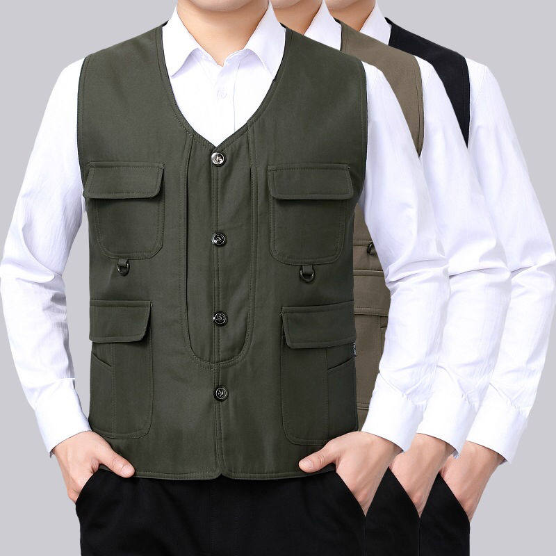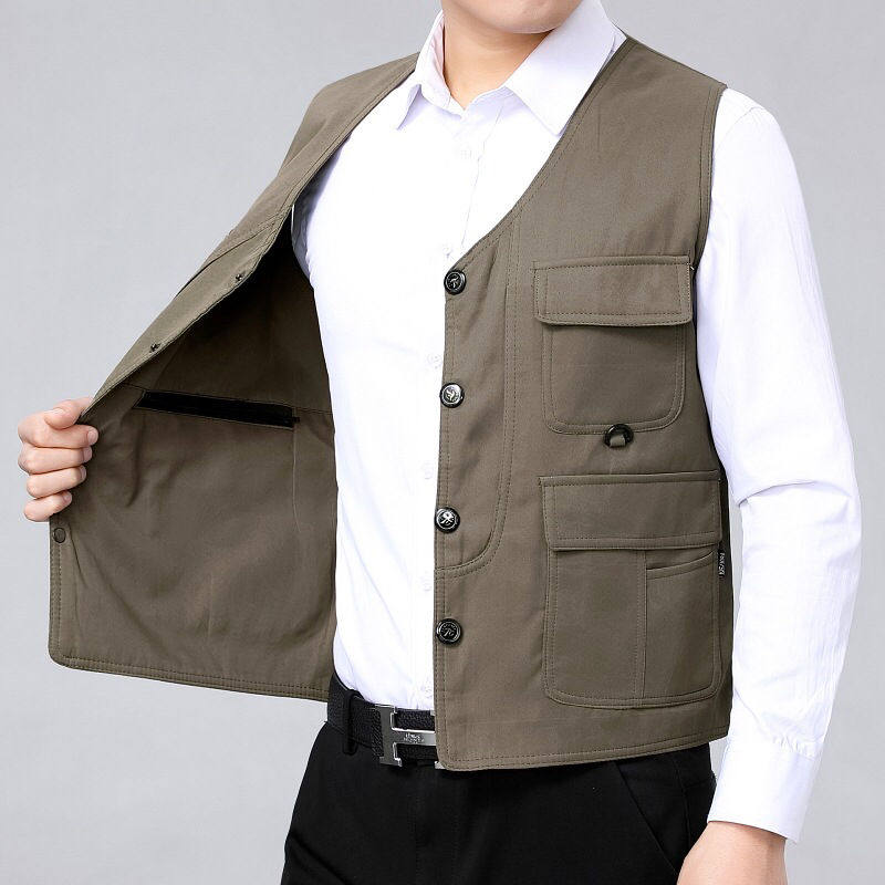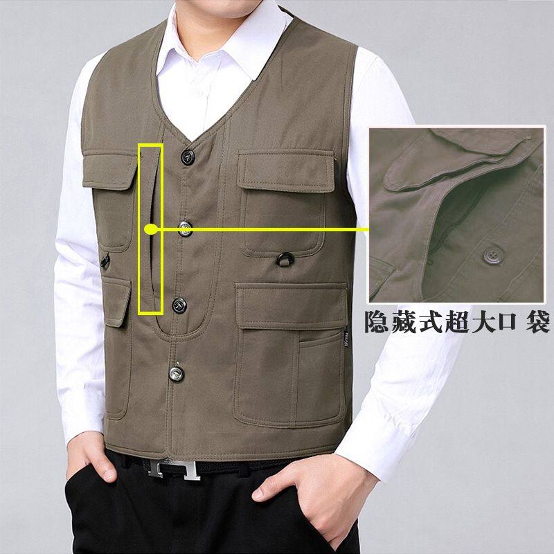 春秋中老年马甲男士纯棉钓鱼背心大码多口袋坎肩薄款马夹外穿爸爸
