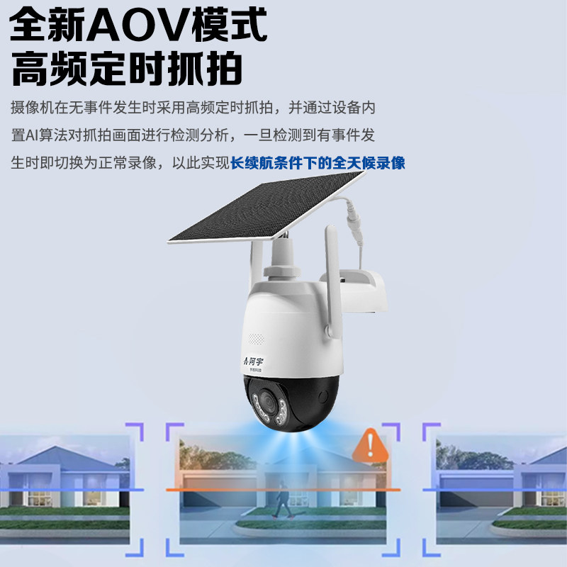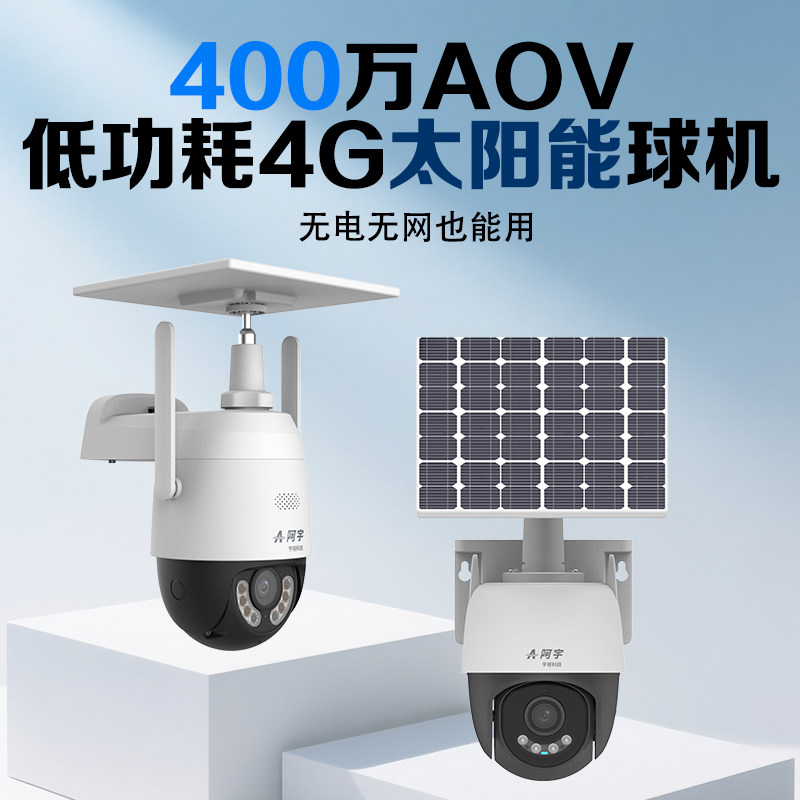 宇视阿宇AOV400万4G免流太阳能球机无网无电开机即用手机远程观看
