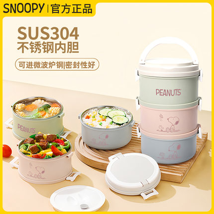 Snoopy史努比304不锈钢保温饭盒外出双层便携餐盒多层卡通便当盒