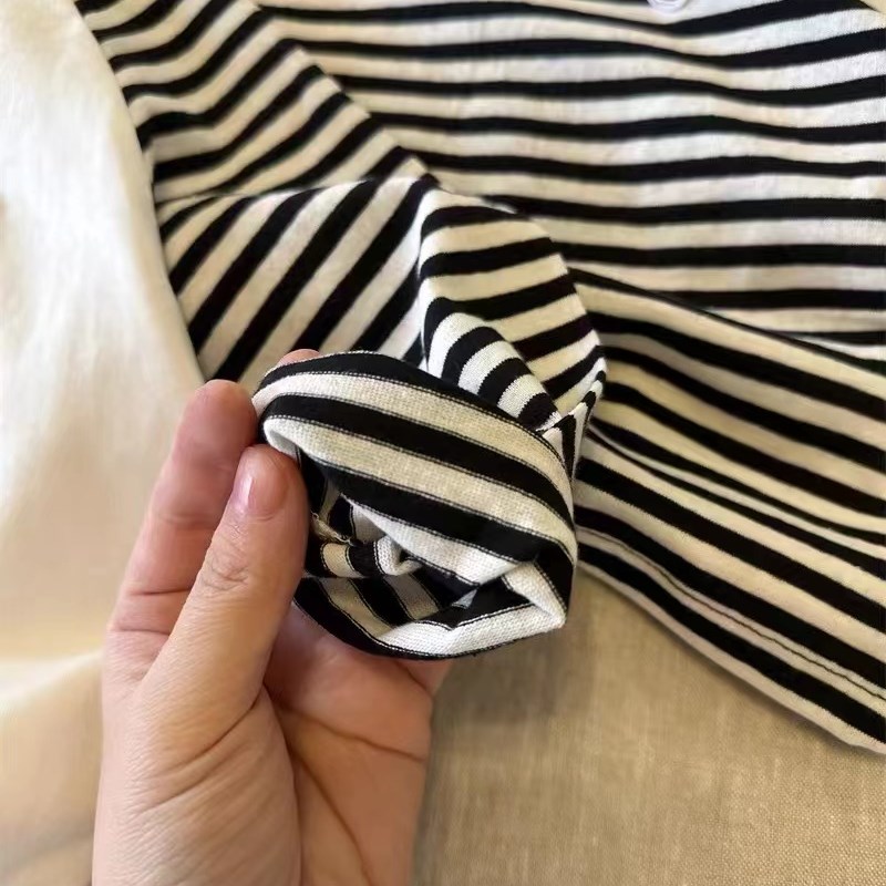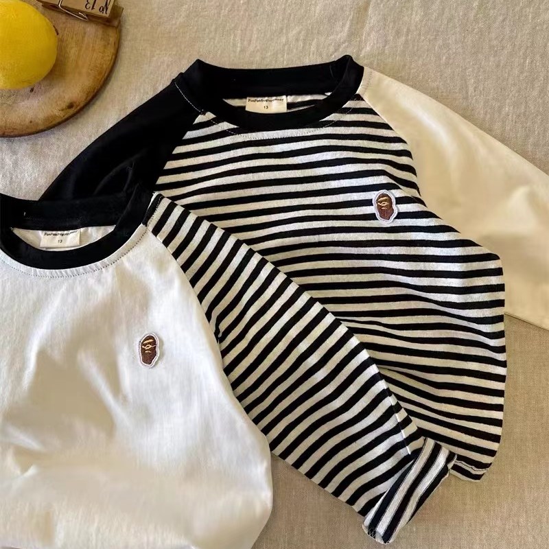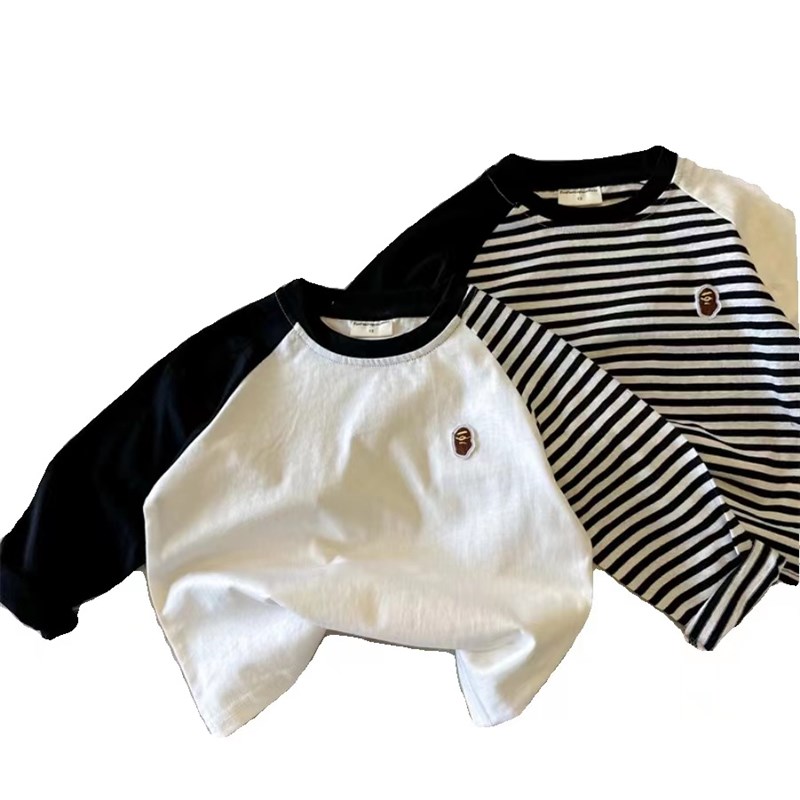 儿童条纹T恤男童春季2024新款上衣插肩袖潮宝宝长袖打底衫女纯棉