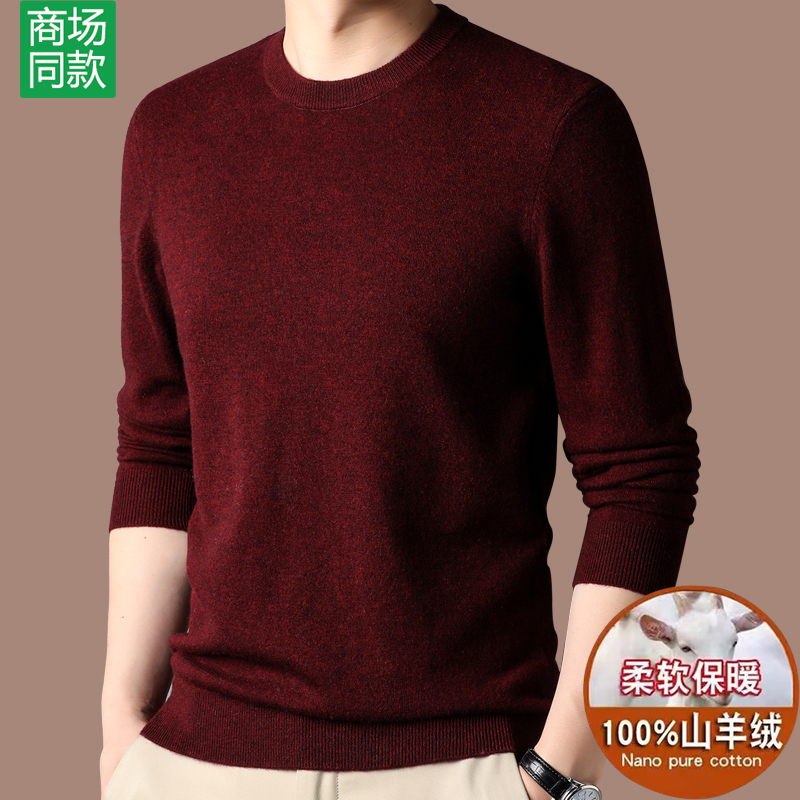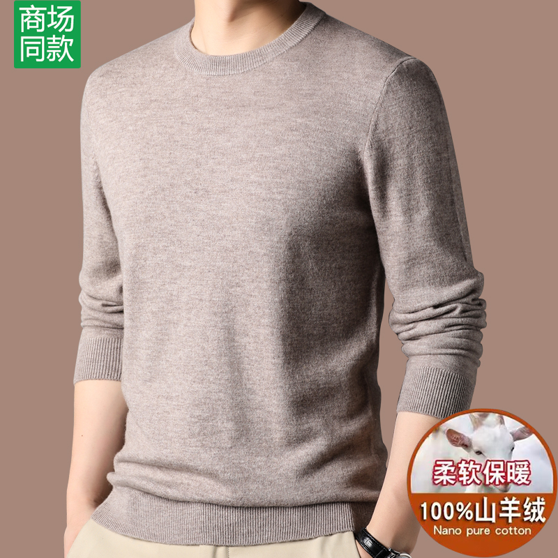 鄂尔多斯市产100%山羊绒衫男秋冬新款纯色圆领套头毛衣羊毛衫男士
