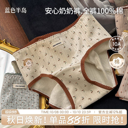 10A抗菌100%全棉内裤女纯棉裆女士短裤透气舒适少女三角裤加长裆