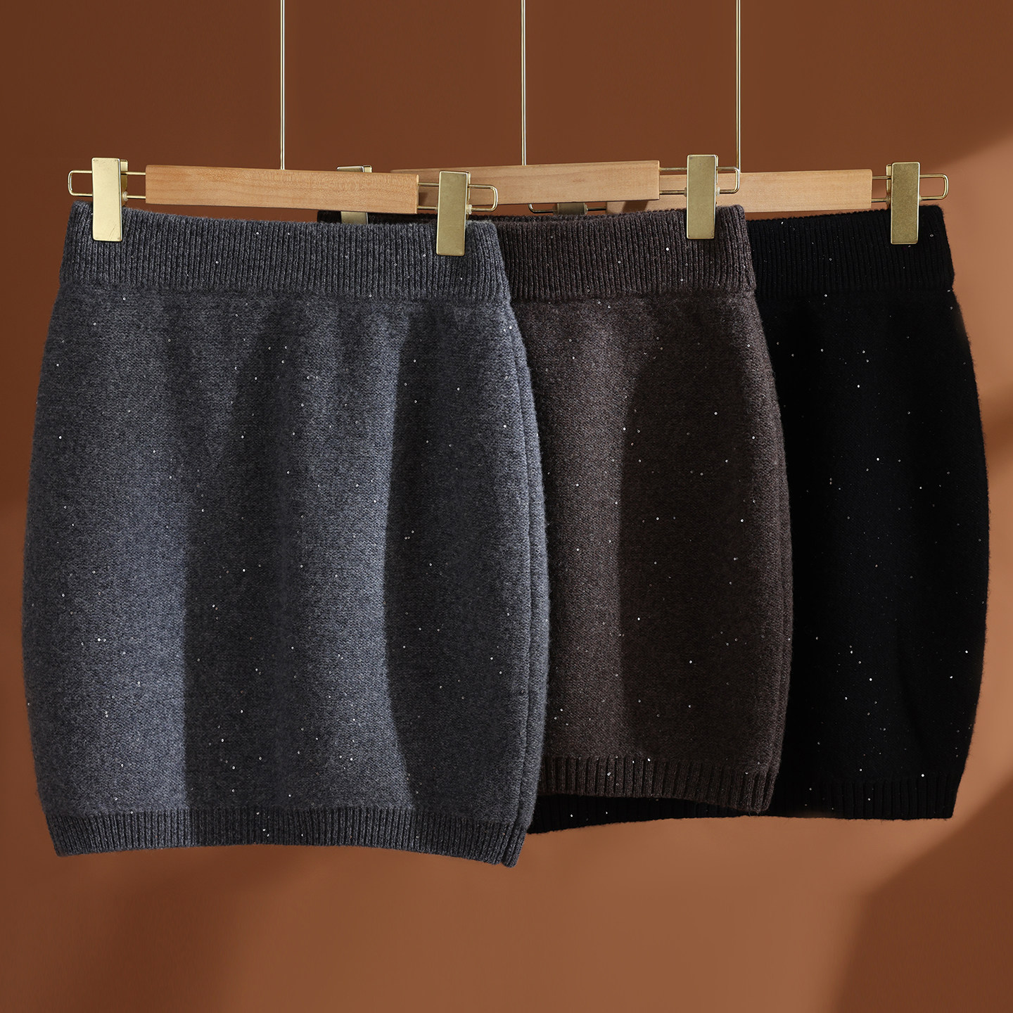 短裙一步裙包臀羊毛针织加厚秋冬款女士裙百塔时尚高档包臀半身裙