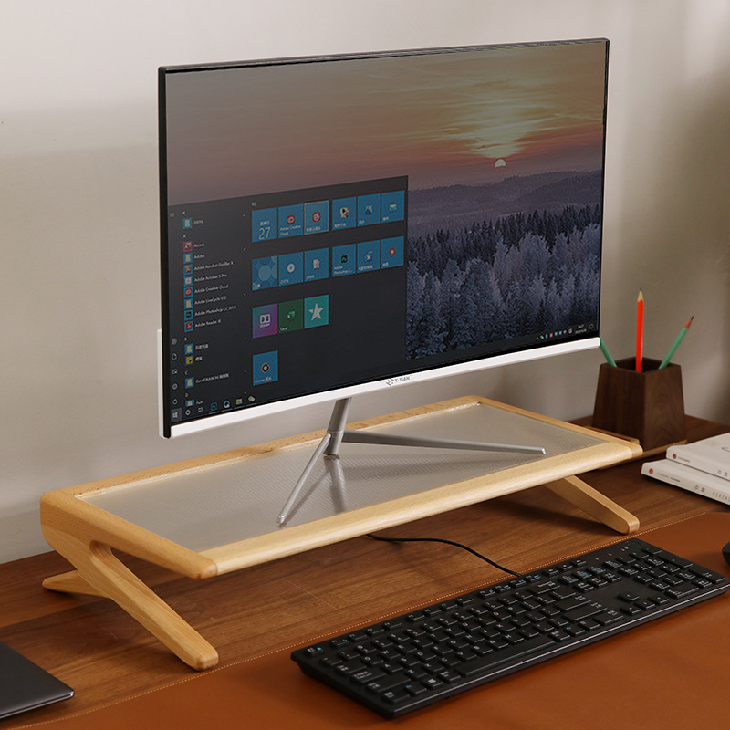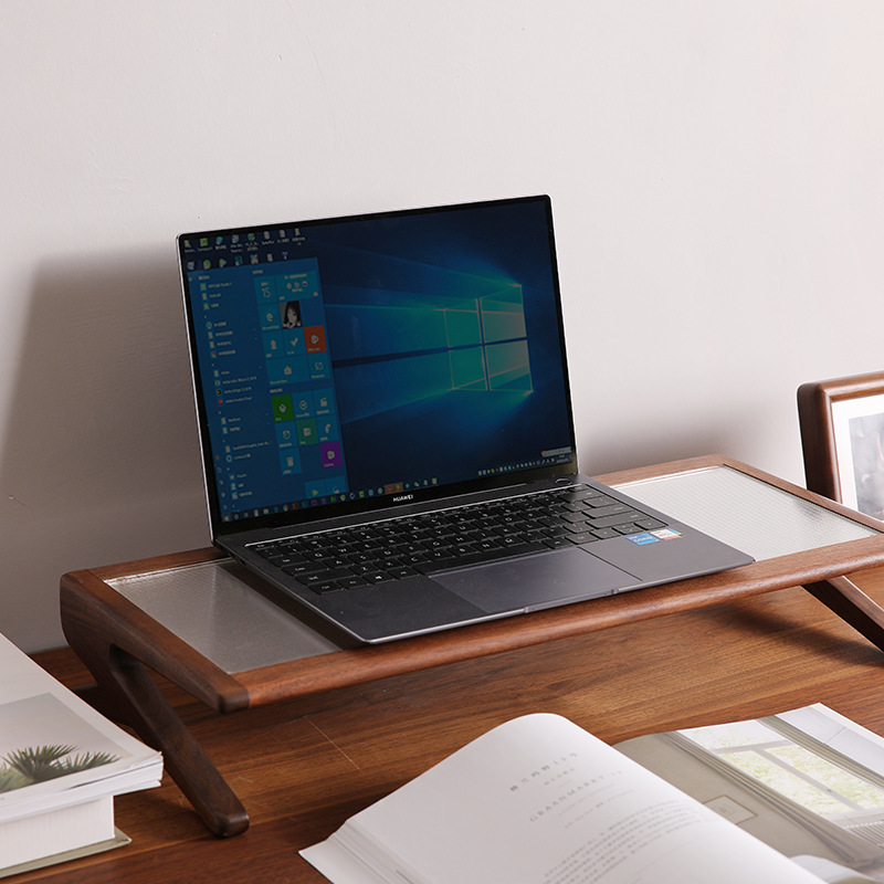 黑胡桃实木电脑增高架显示器屏幕垫高木质支架底座桌面收纳置物架