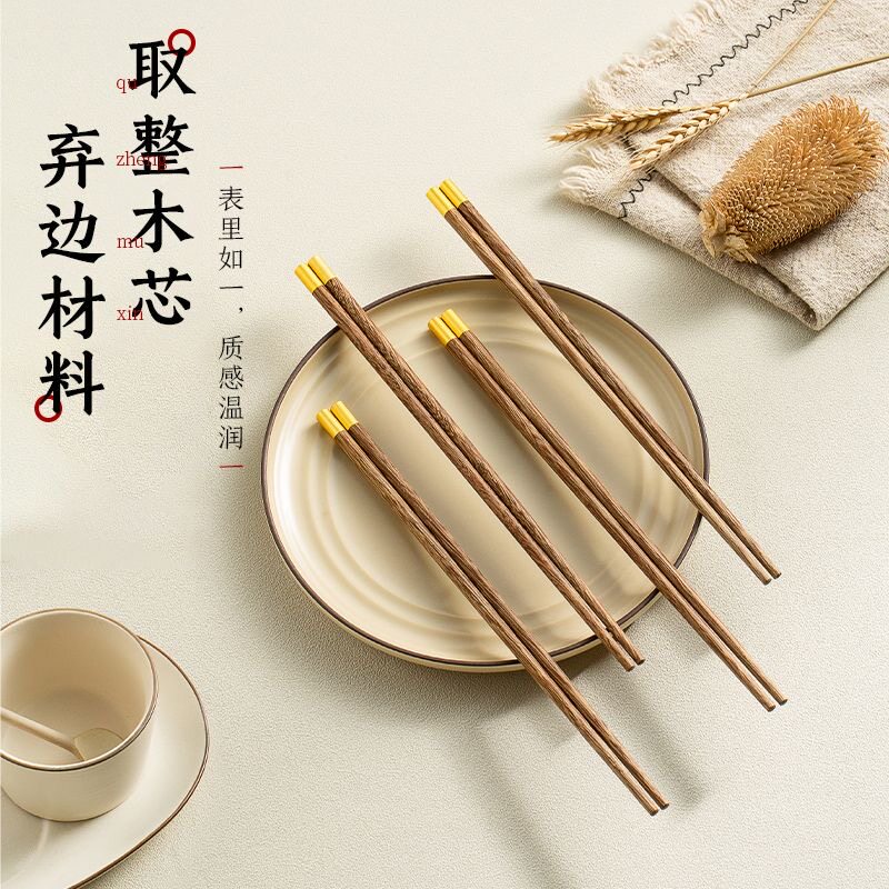 双枪鸡翅木筷子无漆无蜡家用防滑圆福实木快中式木质儿童短筷餐具