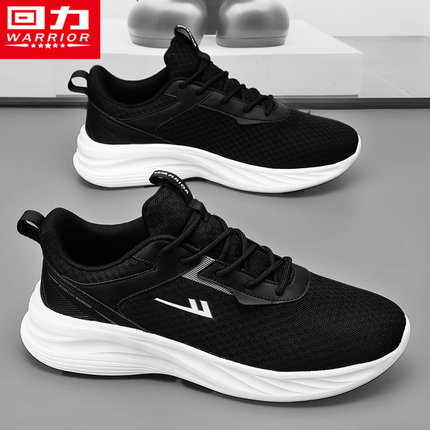回力男鞋春季跑步透气防臭网面轻便网鞋休闲运动大码黑色软底跑鞋