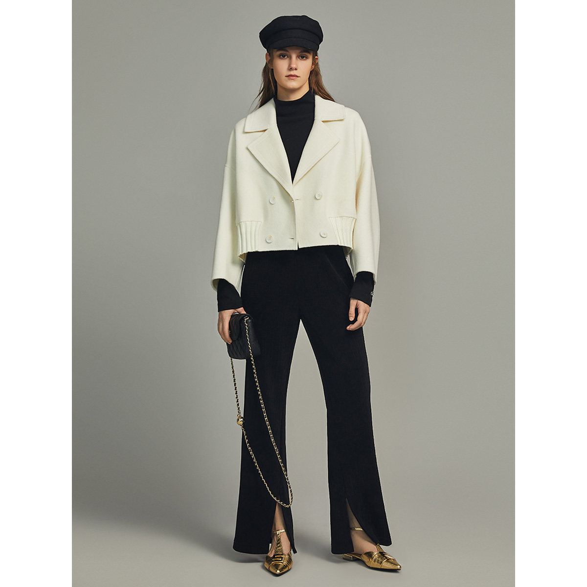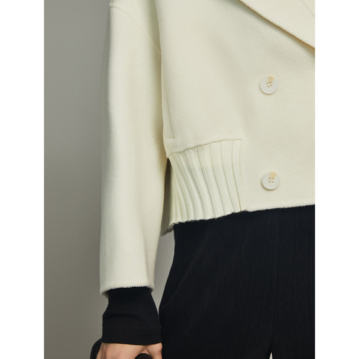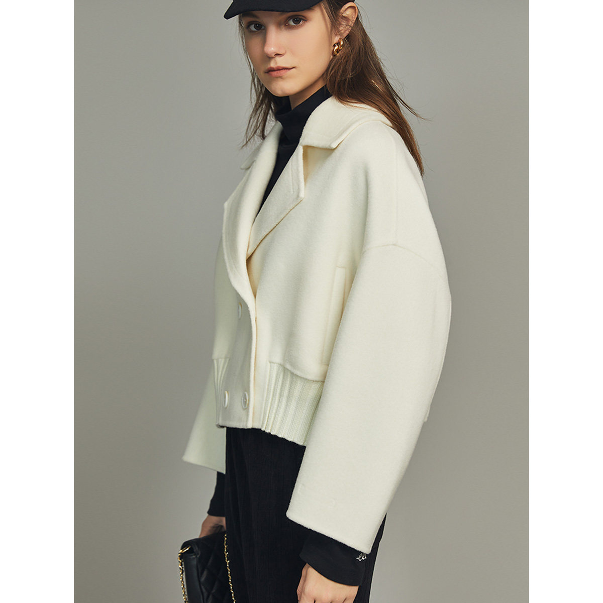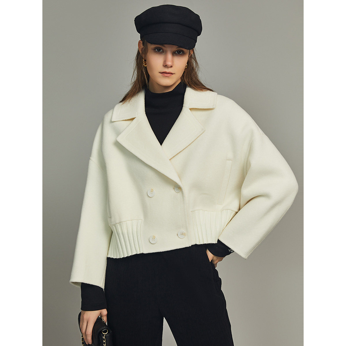 白色毛呢外套女elle双面呢大衣