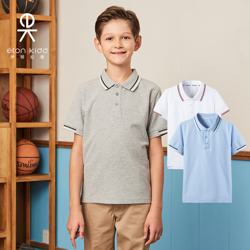 伊顿纪德男童夏季校服POLO衫儿童短袖T恤套装中小学生班服17T043