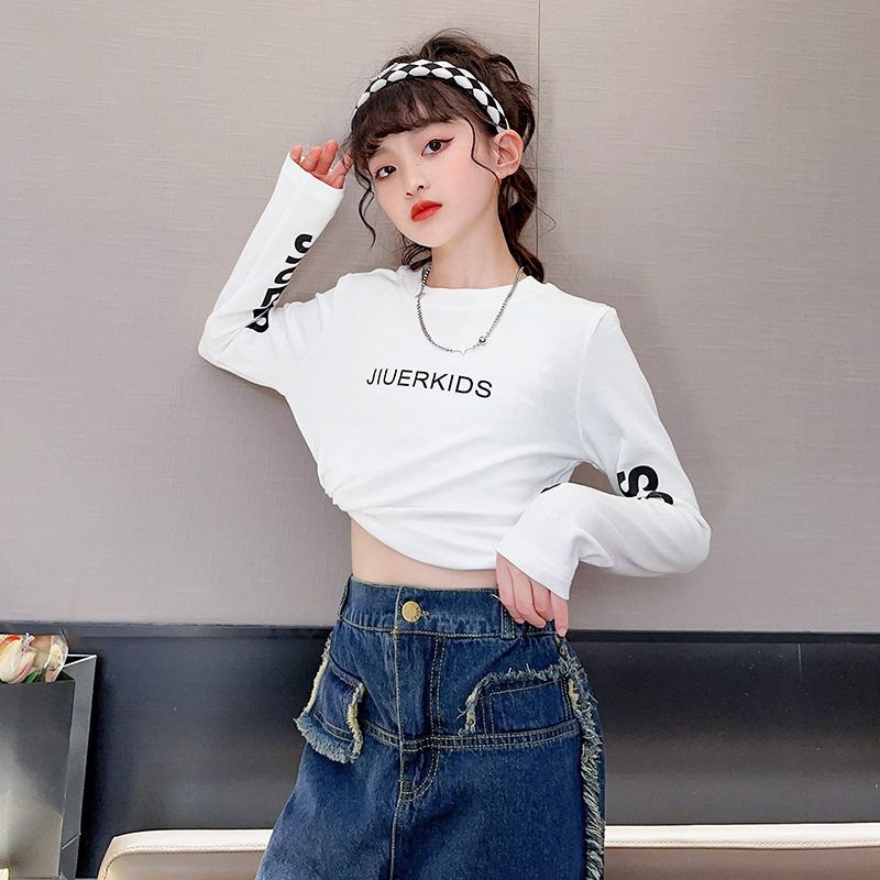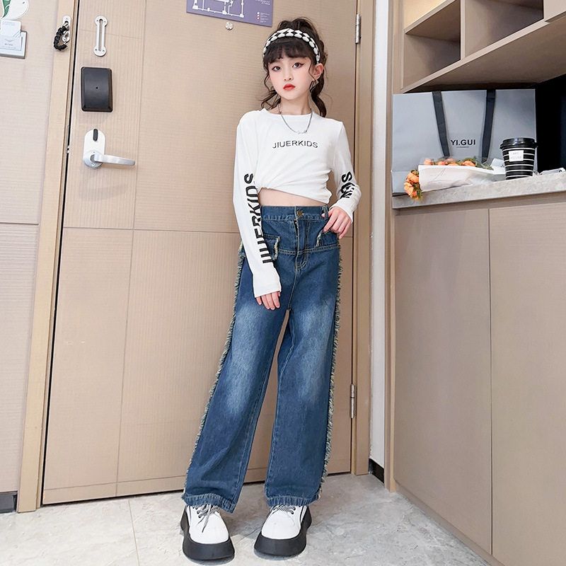 女童春秋套装韩系百搭2025新款时尚洋气女孩休闲打底衫牛仔裤两件
