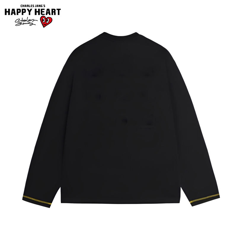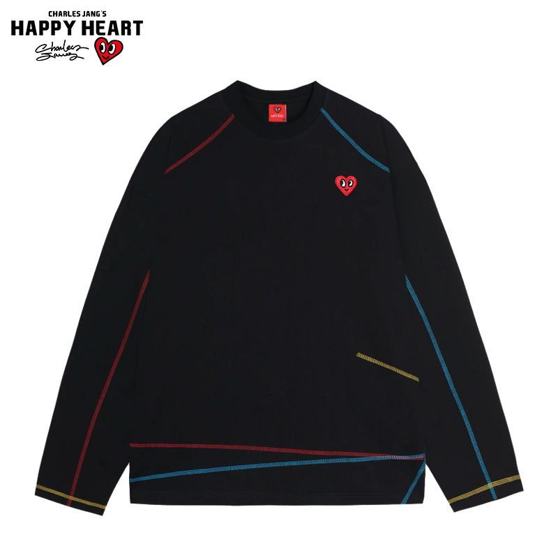 查尔斯桃心 美式彩色条纹长袖T恤男女春秋季纯棉宽松情侣打底衫