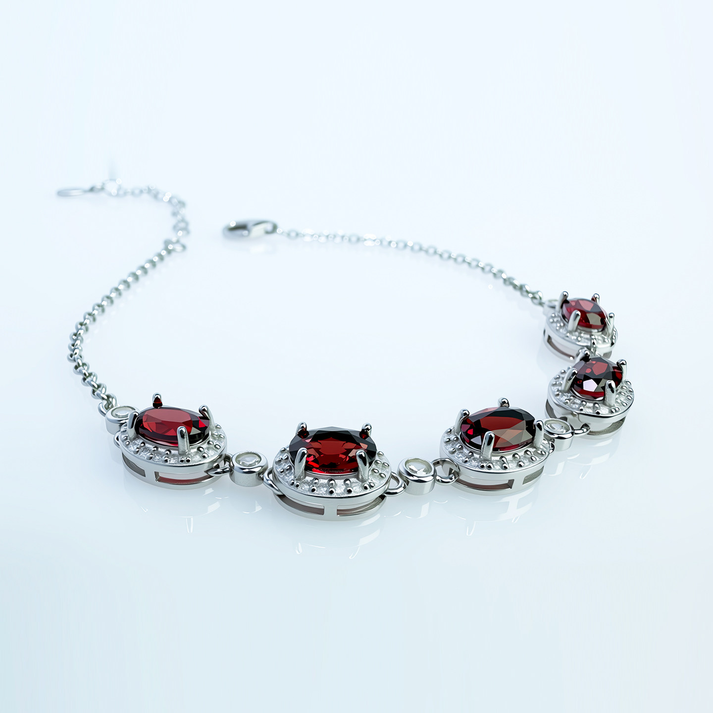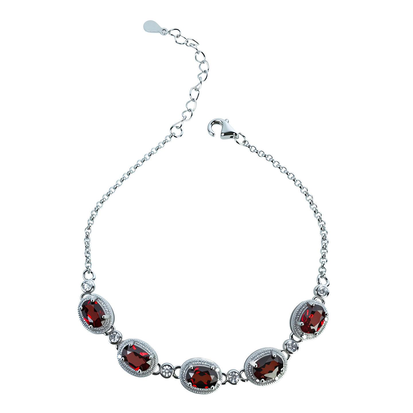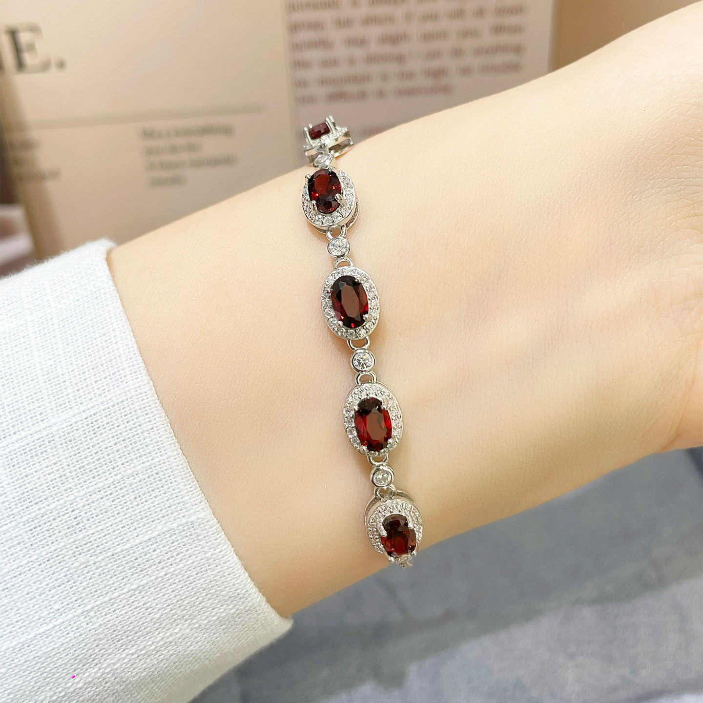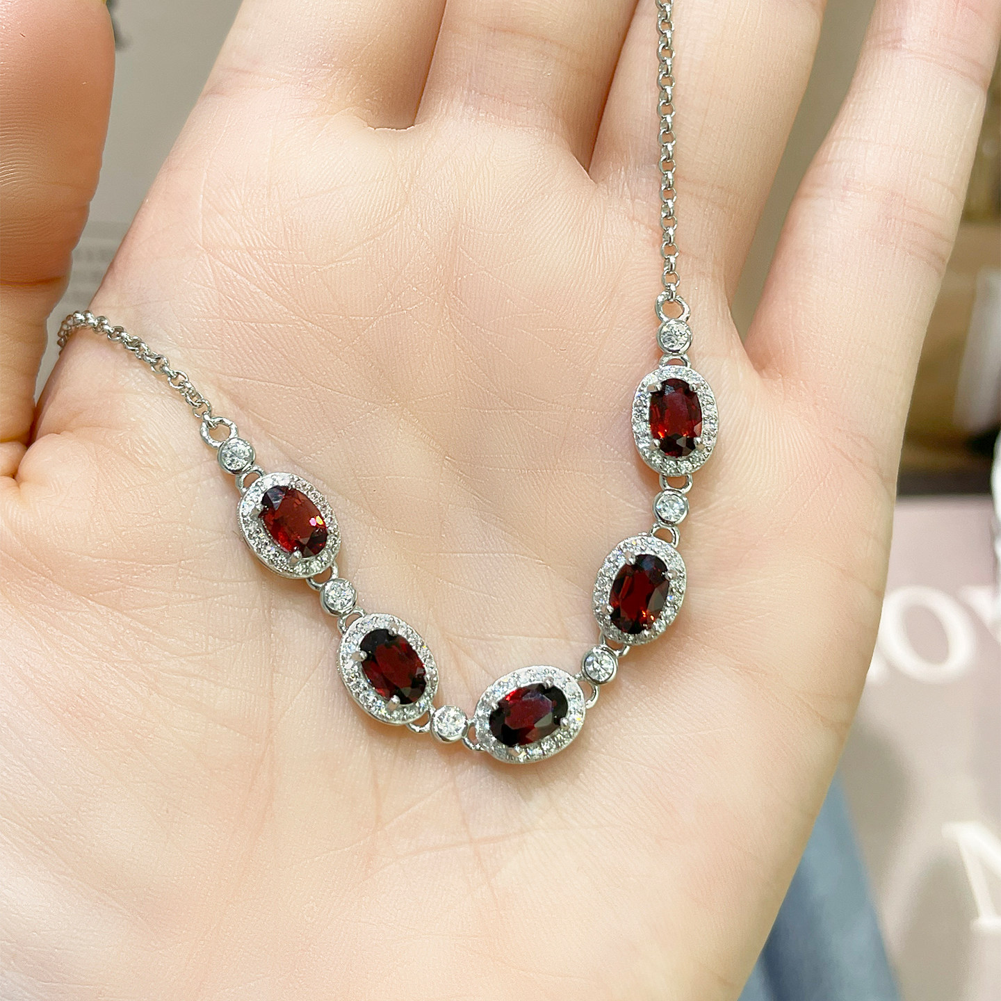 天然原矿红色石榴石手链女S925纯银镶嵌宝石细链手饰独爱小众设计