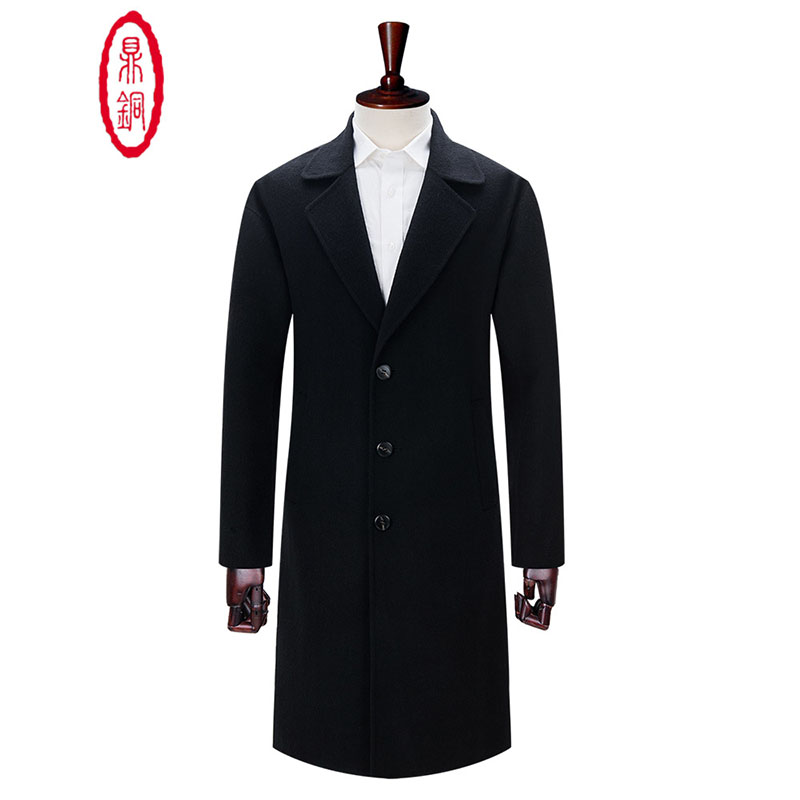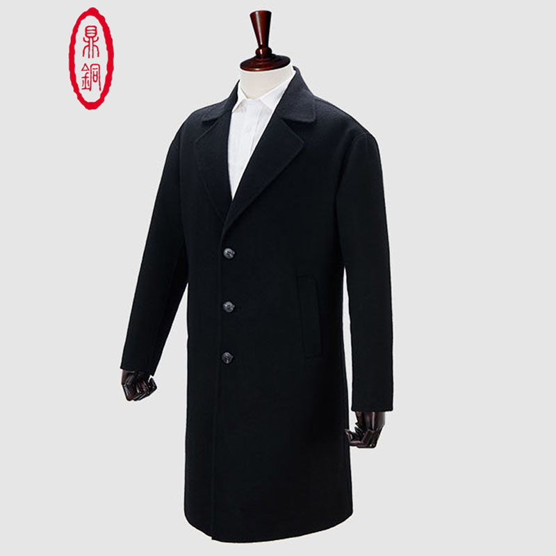 鼎铜双面呢羊毛大衣男中年商务休闲秋冬季西装领加绒加厚毛呢外套