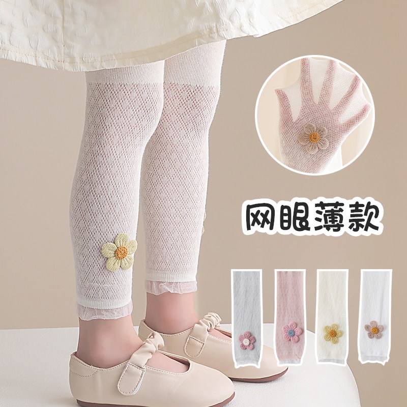 女童孩花边打底裤子春秋夏季网眼薄款纯白色棉儿童宝宝防蚊连裤袜