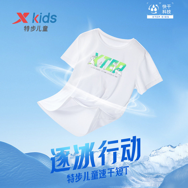 特步童装男童速干短袖2025秋季新款儿童运动休闲t恤大童透气夏装