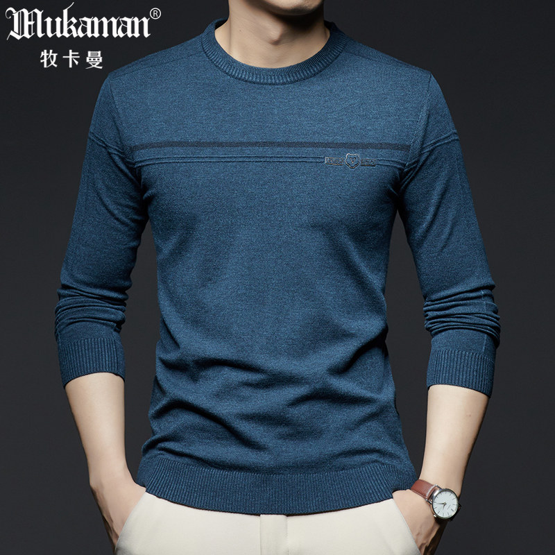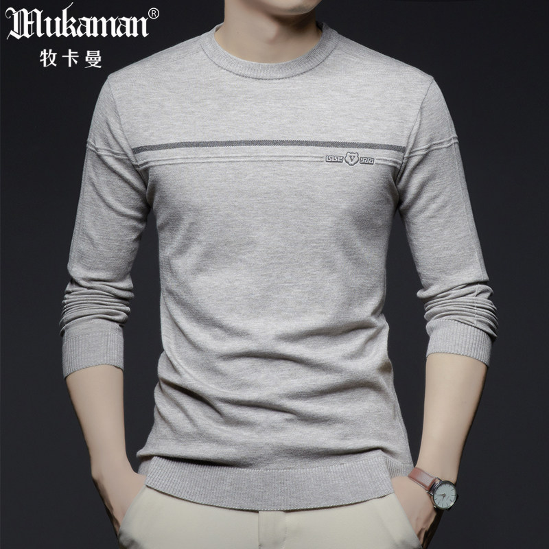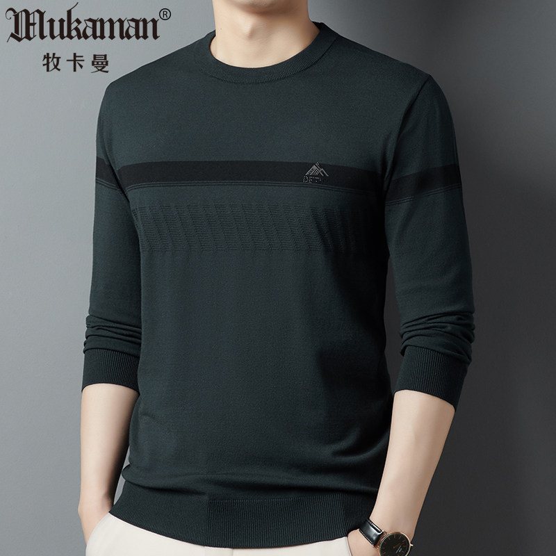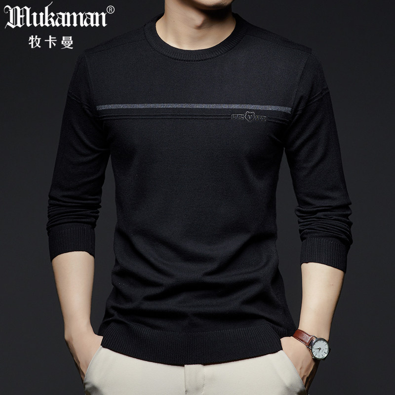 男士薄款针织T恤长袖秋装无领黑色线衫卫衣帅气中年爸爸装薄毛衣