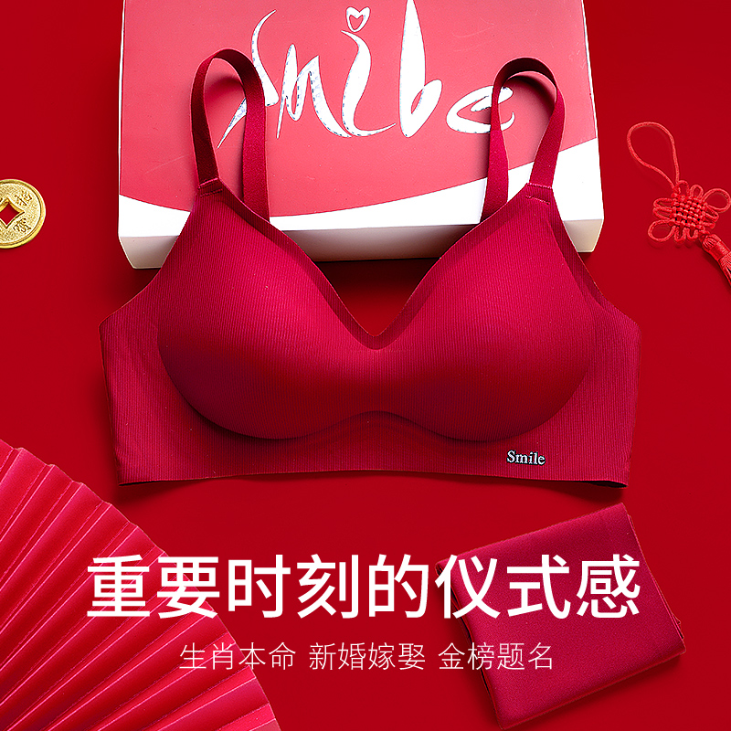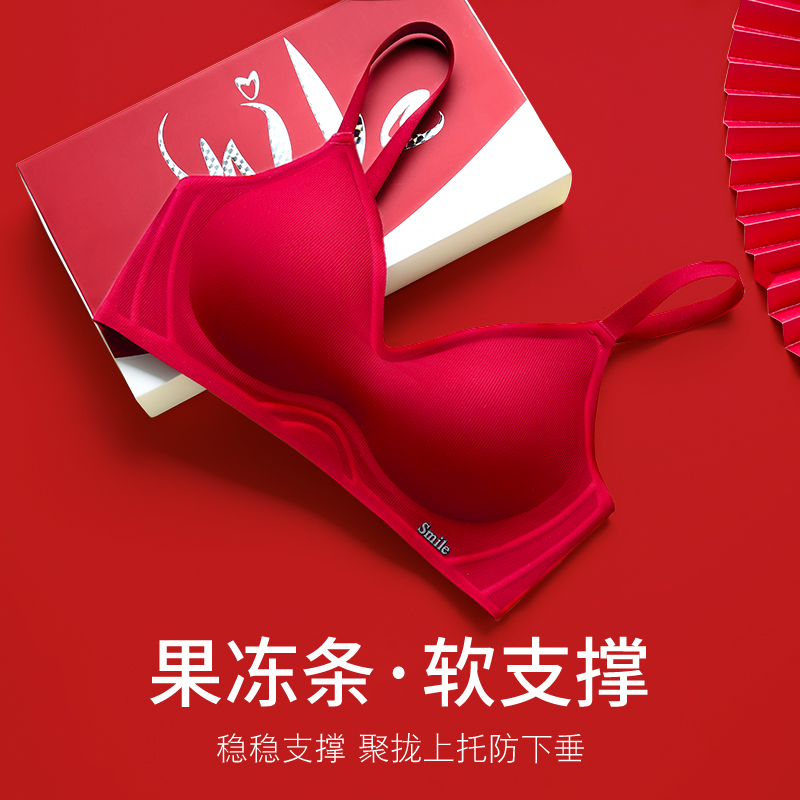 本命年红色内衣内裤女套装无痕美背文胸结婚新娘小胸聚拢加厚胸罩