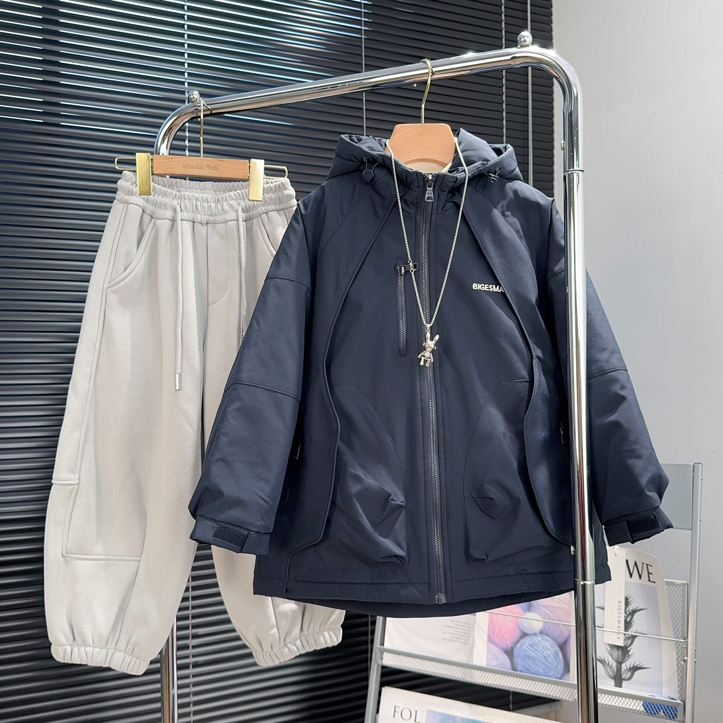大E小e童装男童夹棉冲锋衣冬款中大童加厚外套韩版儿童保暖棉衣潮