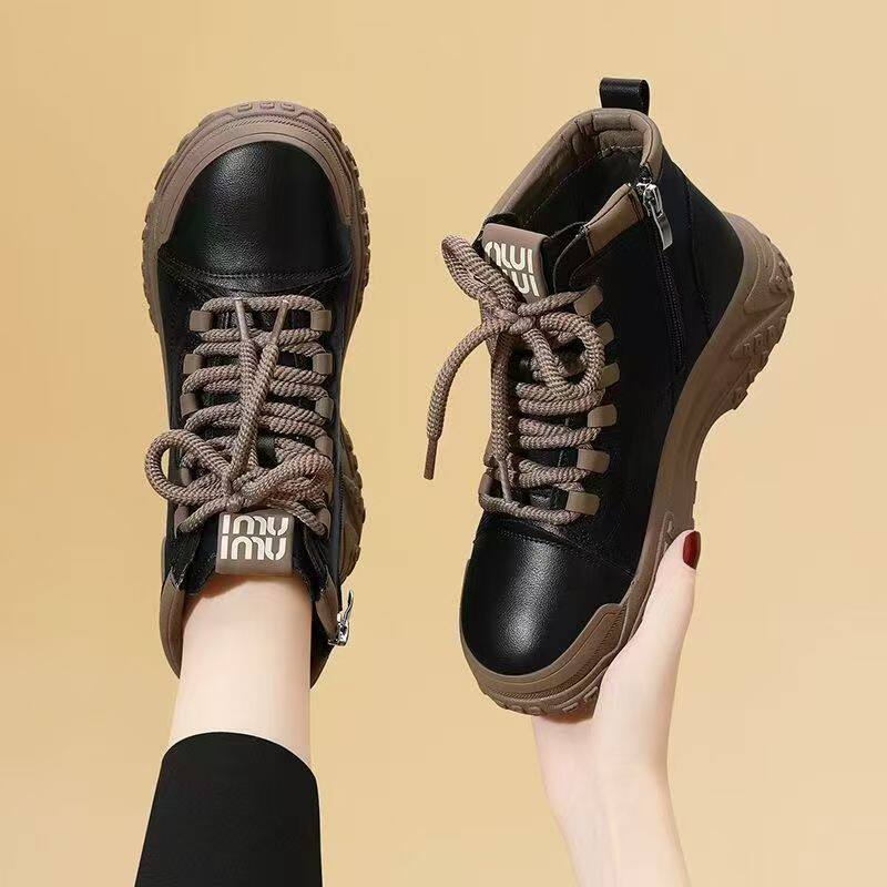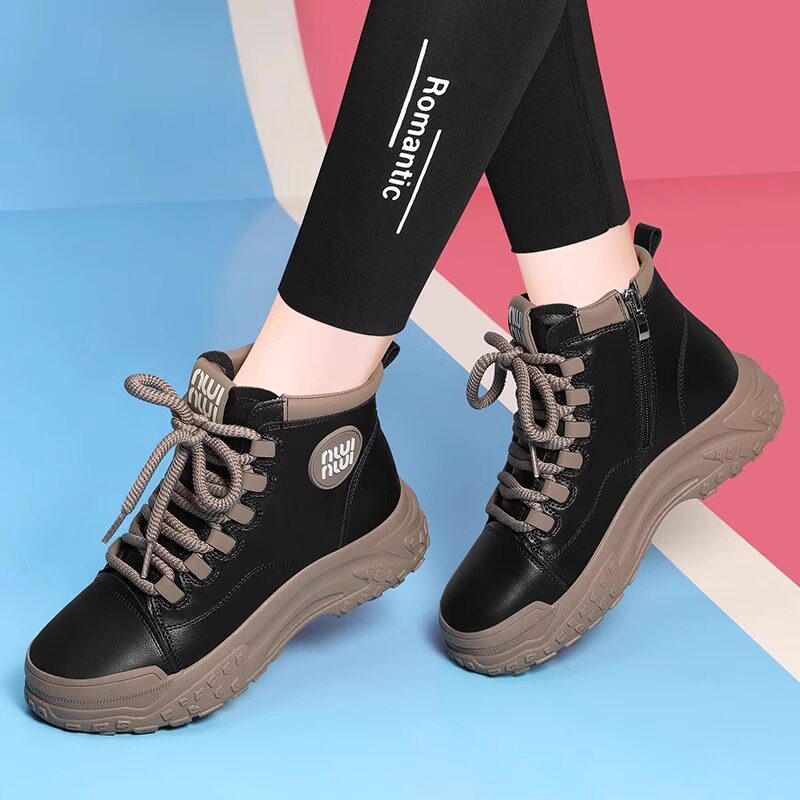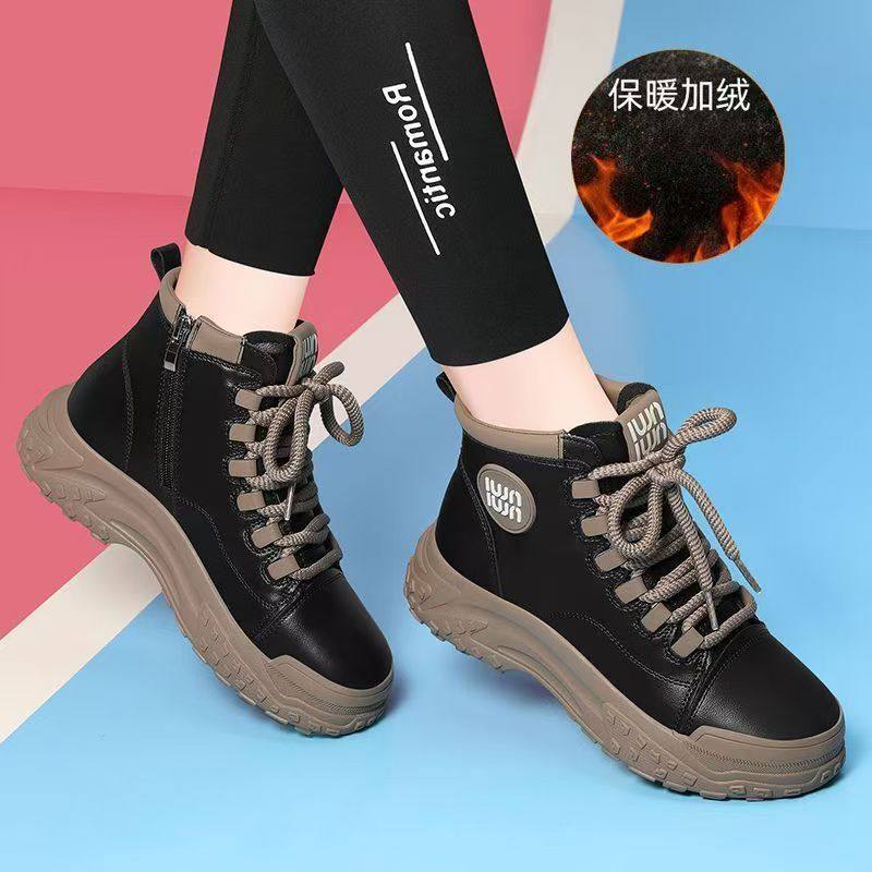 品牌官方自营真皮厚底马丁靴女25秋冬新款加绒保暖短靴防滑雪地靴