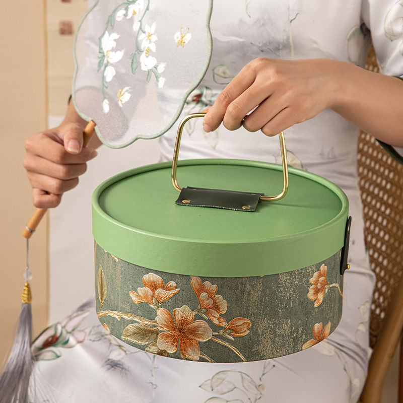2025新款国风春节年货礼盒包装盒空盒圆桶形坚果特产熟食硬盒定制