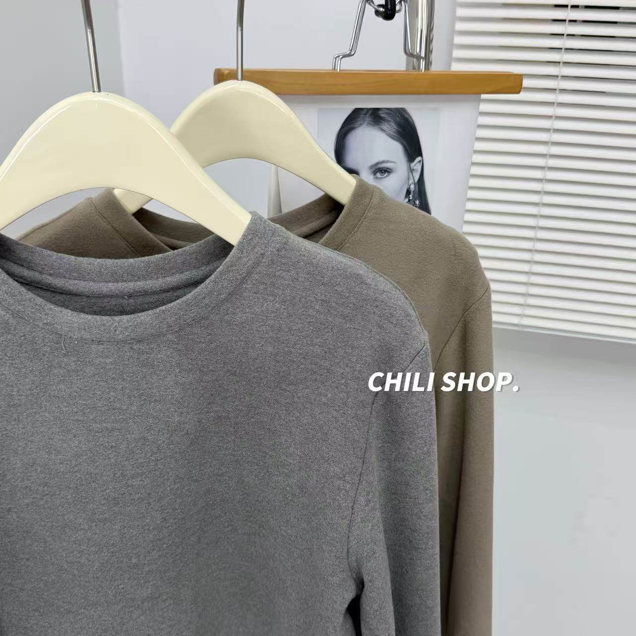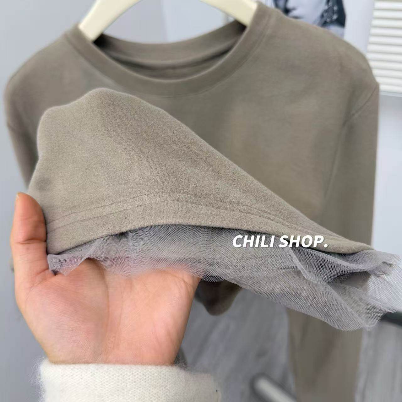 【英英Chili】德绒加厚简约纯色设计下摆花边打底衫 11.24