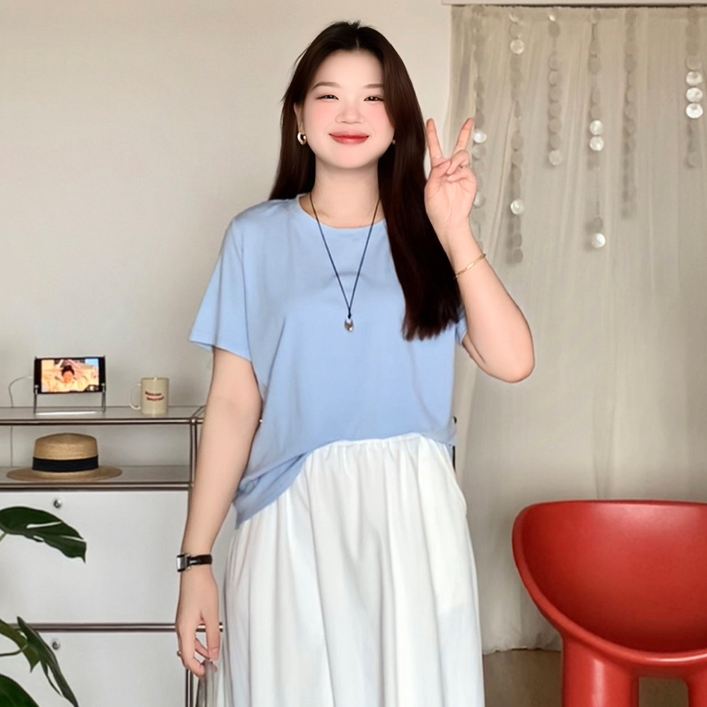 大码女装纯色圆领基础短袖T恤