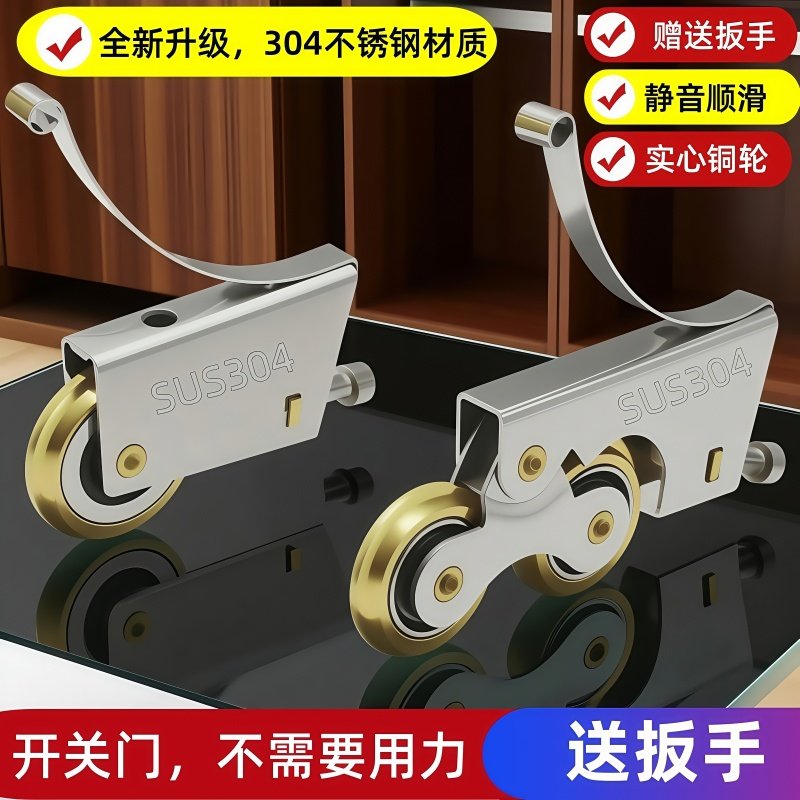 304不锈钢厨房卫生间移门下滑轮衣柜玻璃推拉门地滑轮子静音