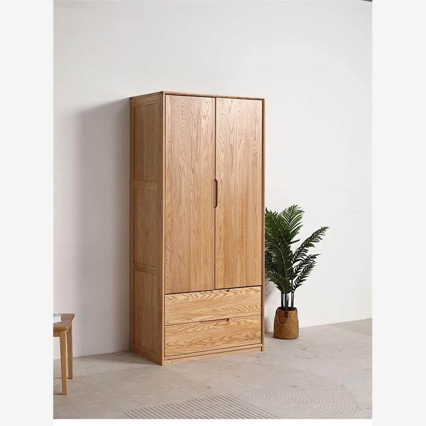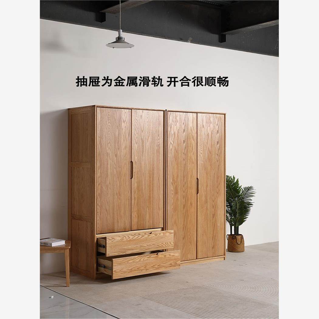 天坛家具红橡木衣柜全实木衣柜北欧卧室滑动门家庭双门储物柜衣柜