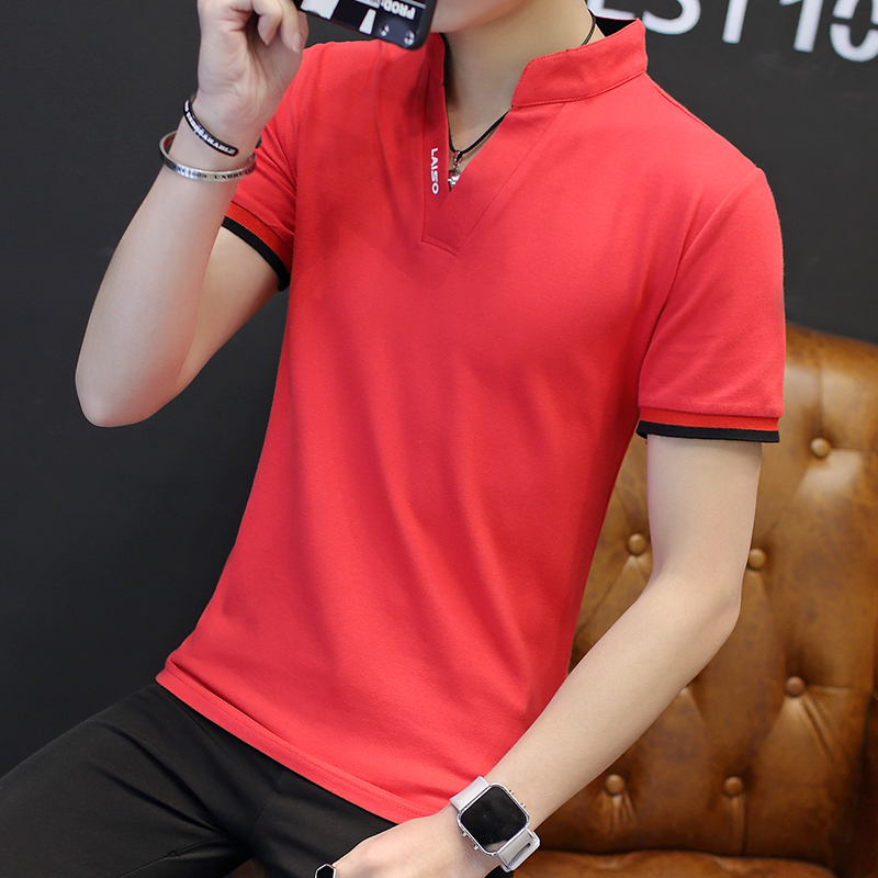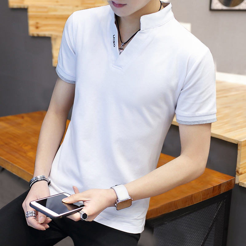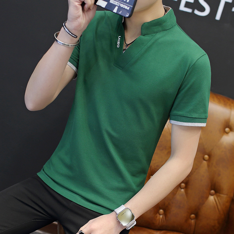 男士短袖t恤棉感潮流立领百搭体桖 夏季新款薄款时尚修身半袖衣服