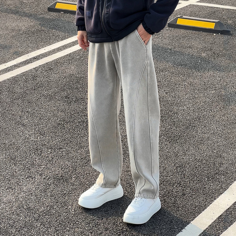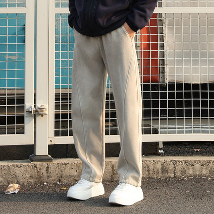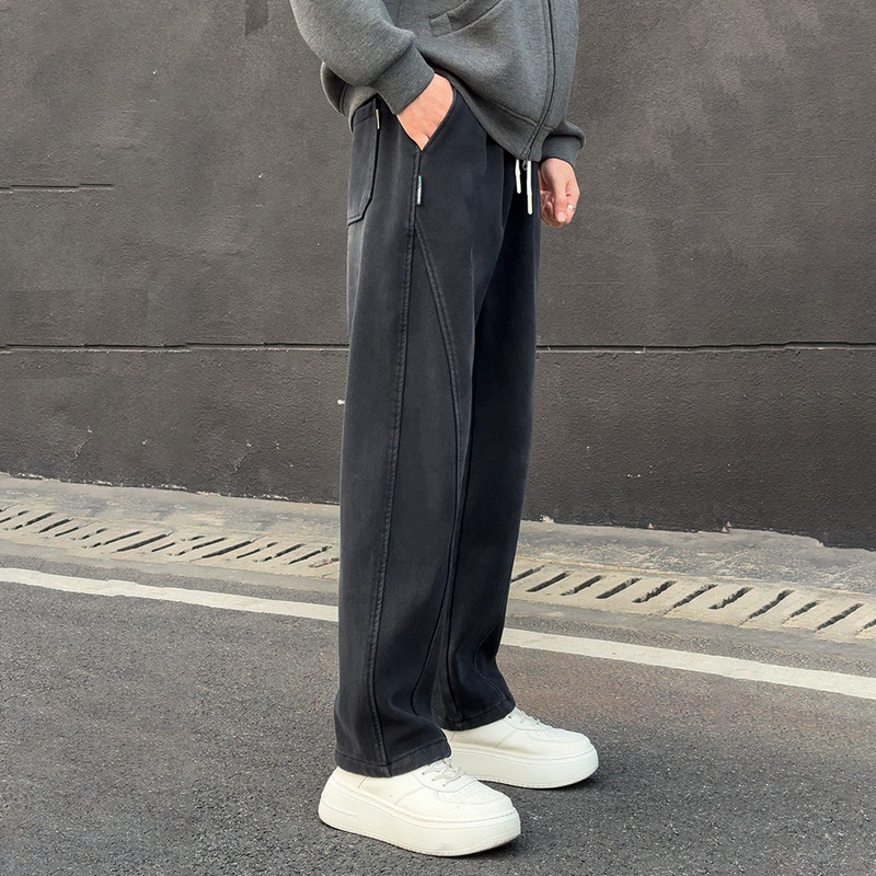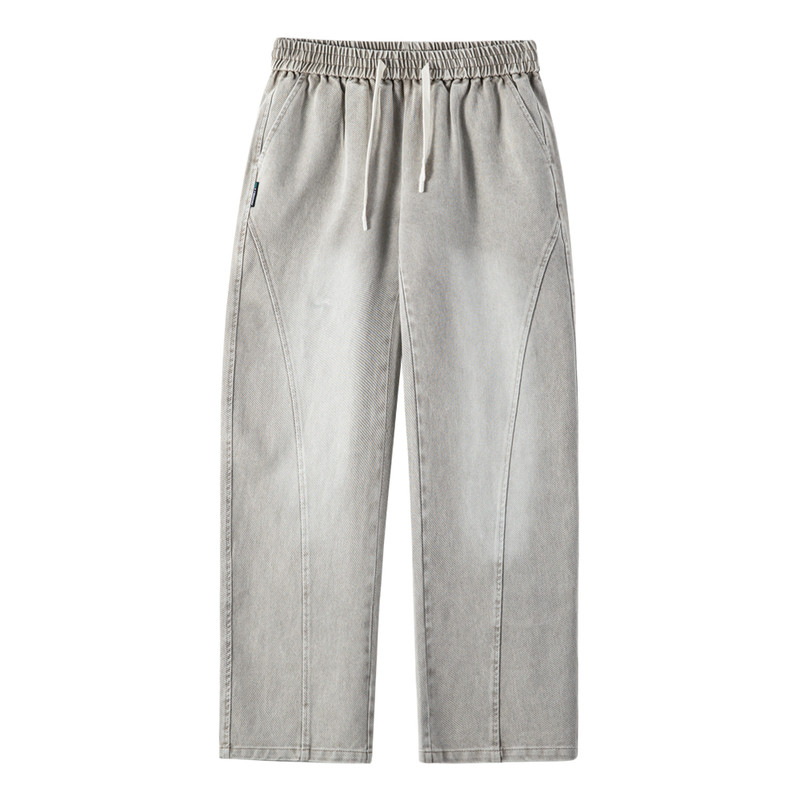 美式水洗复古重工牛仔裤男款潮牌宽松拼接弯刀星空纹阔腿牛仔长裤