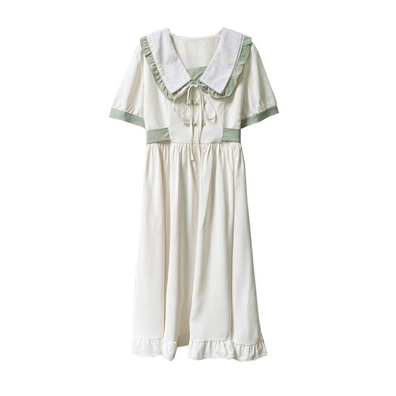 小清新新中式连衣裙少女夏装新款初中高中学生森系仙女娃娃领裙子