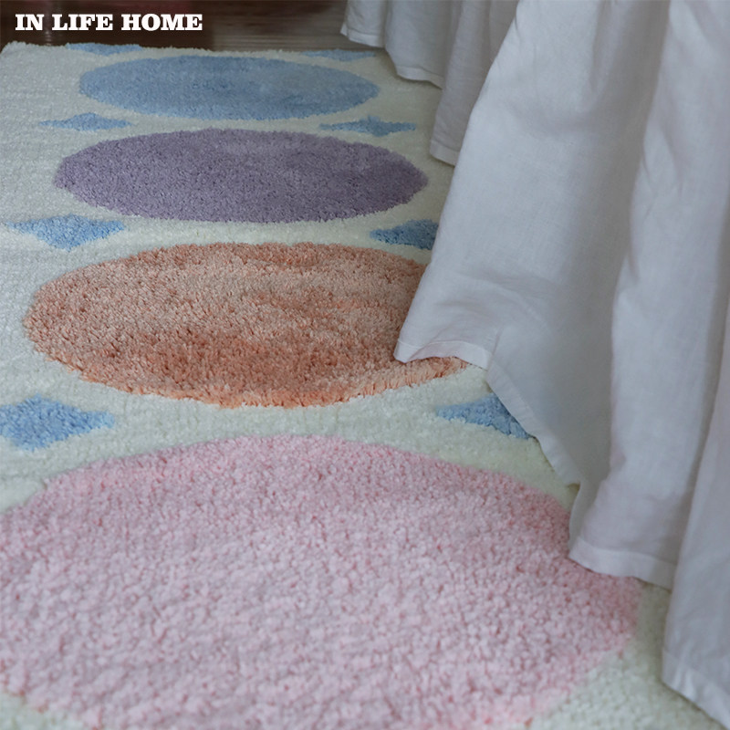 ins风客厅卧室地毯床边毯长条简约簇绒加厚飘窗垫 可洗防滑不移位