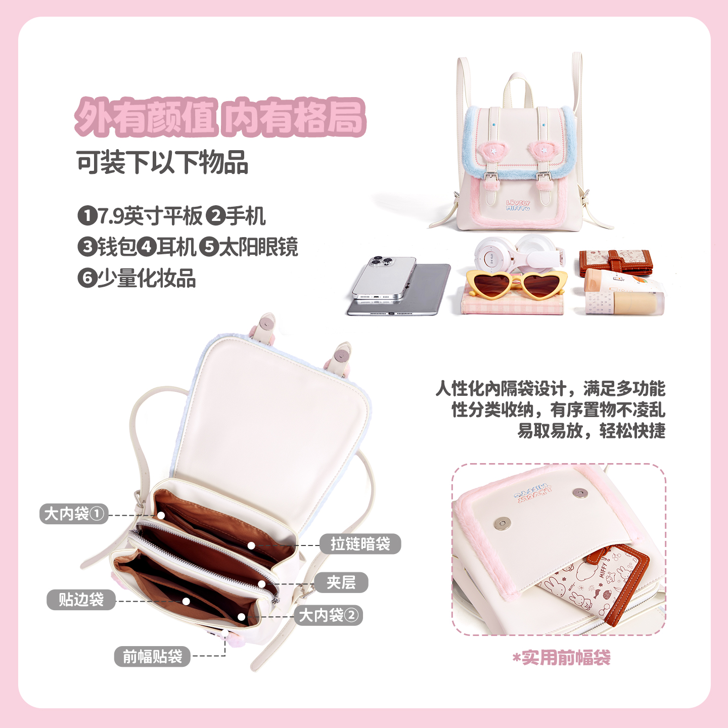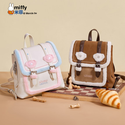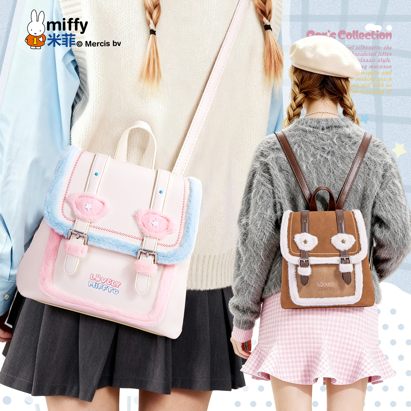 米菲双肩包2025新款可爱毛绒学生背包学院风手提单肩斜挎一包三用