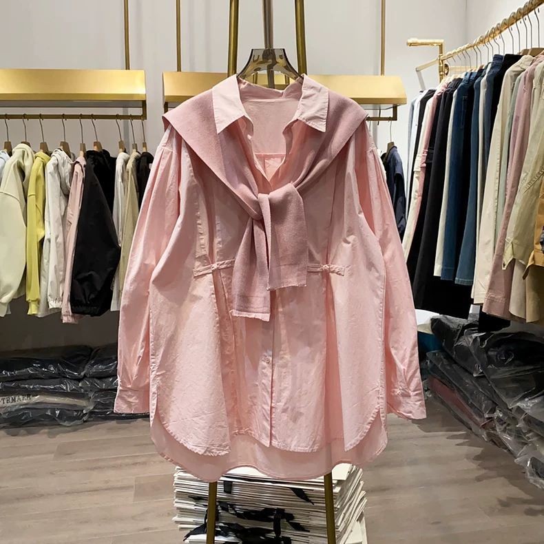 胖MM大码300斤韩系慵懒风休闲衬衫女春秋宽松显瘦长袖衬衣上衣潮
