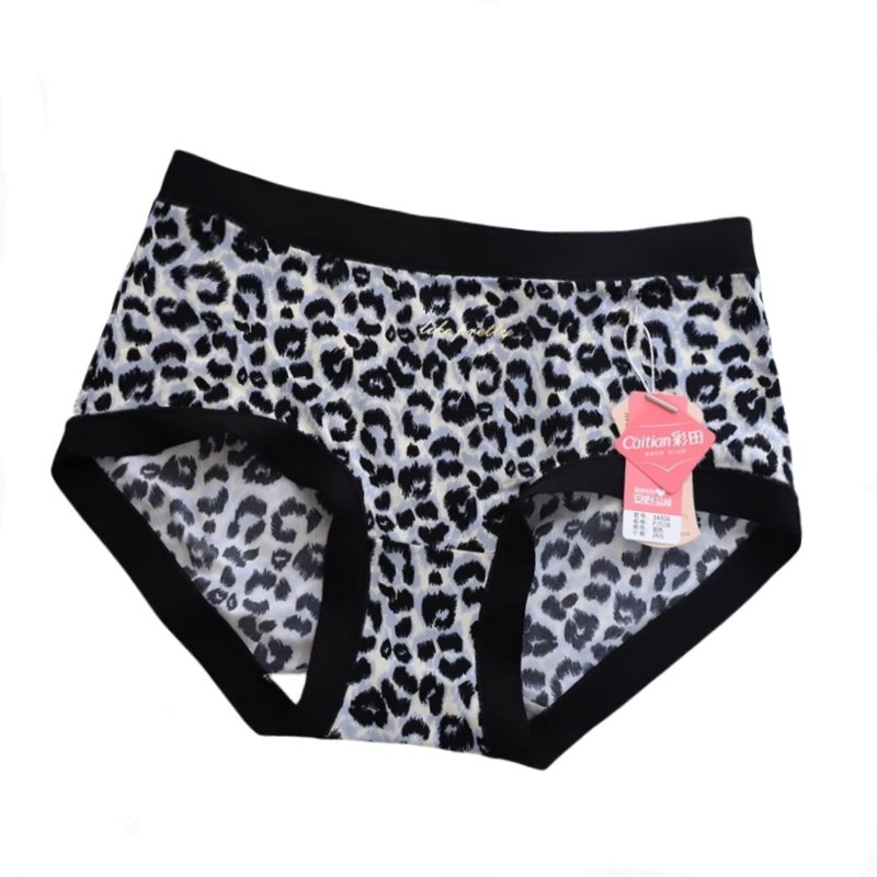 彩田内裤女中腰冰丝超薄豹纹性感印花大弹力抗菌底裆女士三角裤