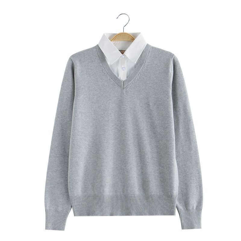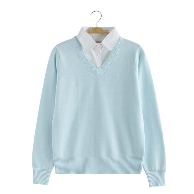 学院风秋冬jk制服毛衣套头日系校供纯色假两件针织衫长袖上衣女装