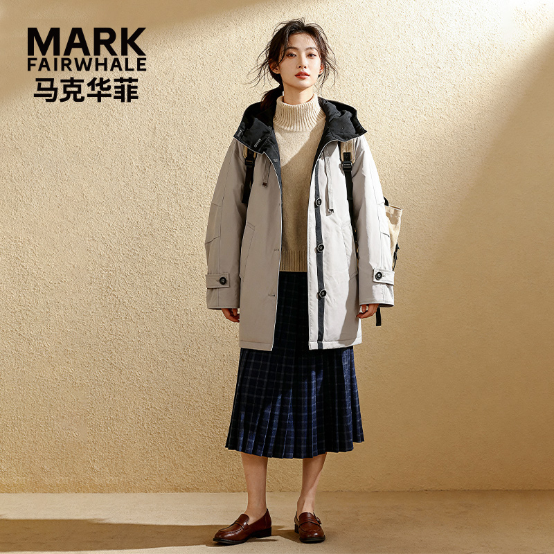 马克华菲女装高端轻奢鹅绒秋冬新款欧美风中长款风衣羽绒服外套