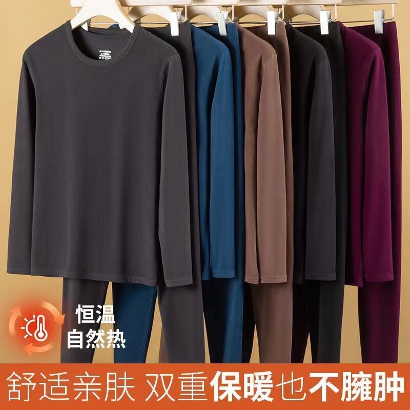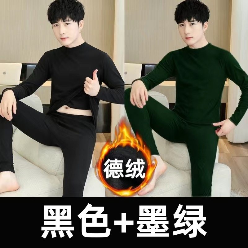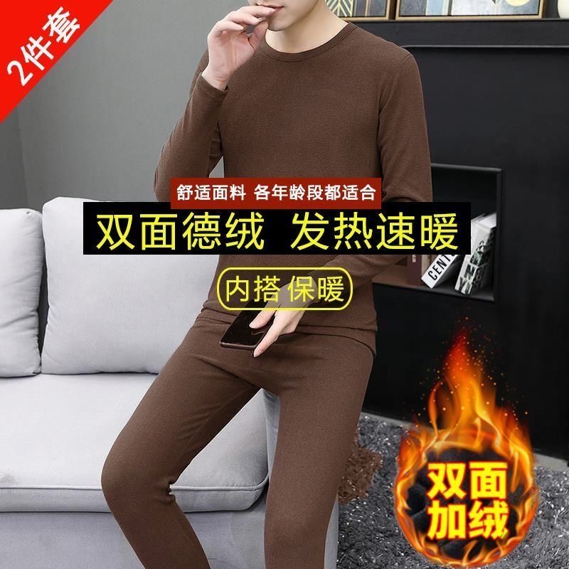 买一送一秋冬季自发热保暖内衣男加厚圆领套装男士德绒秋衣秋裤