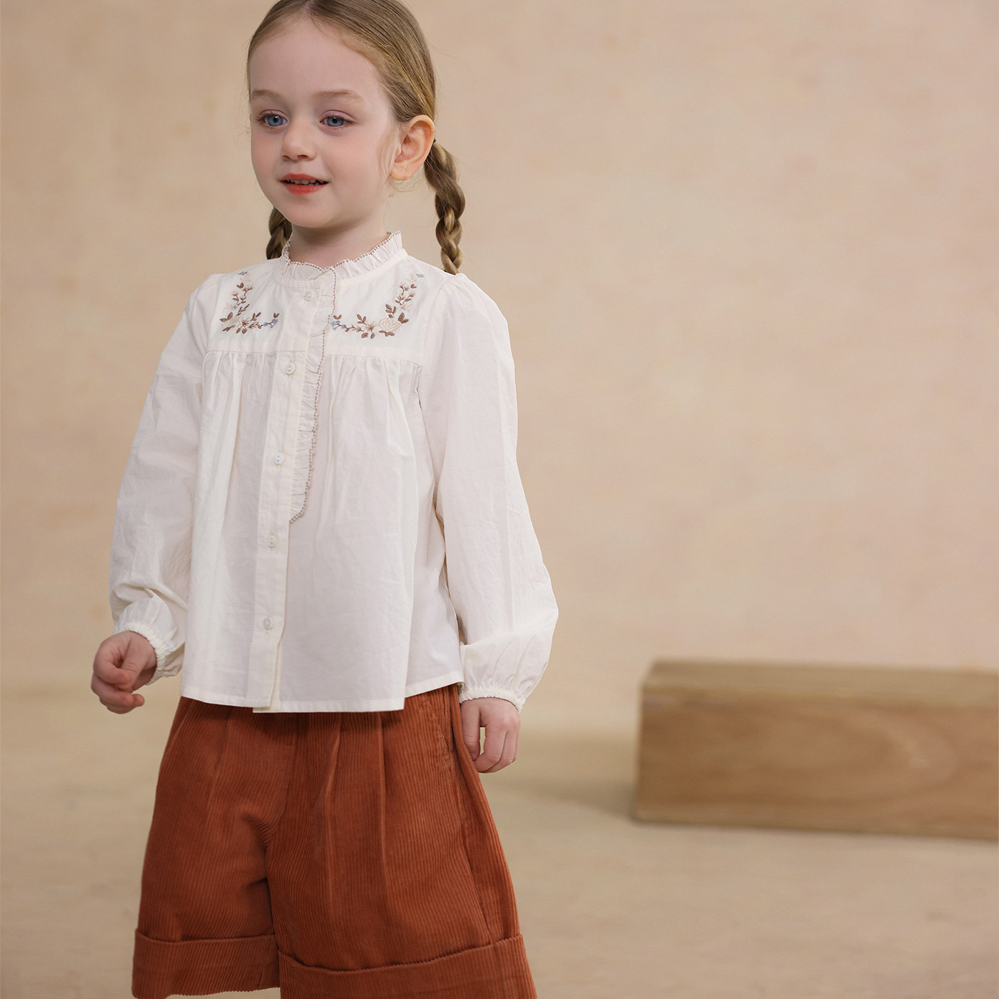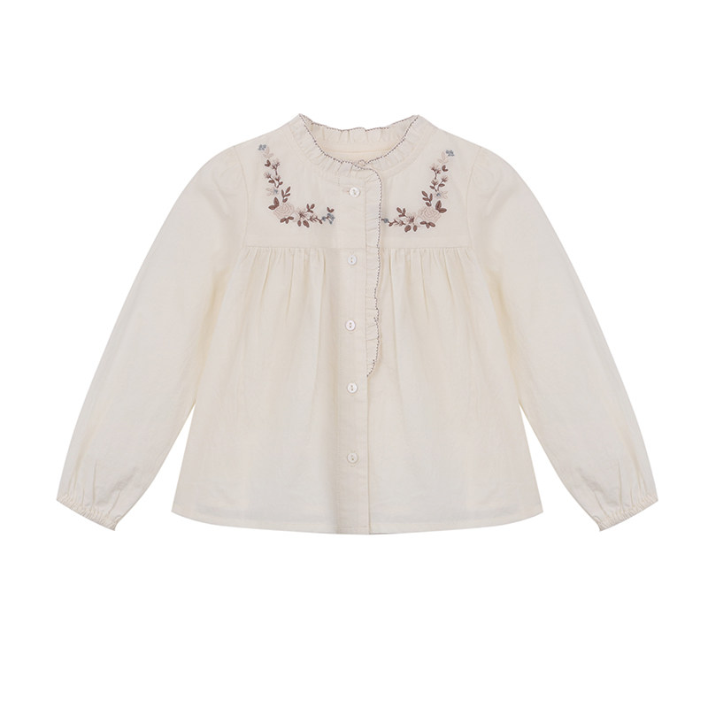 允儿妈女童刺绣花边领衬衫