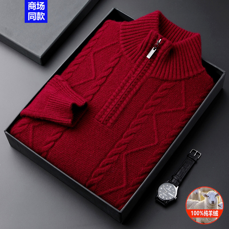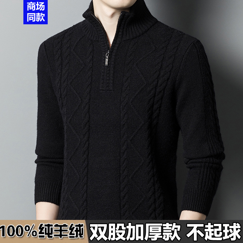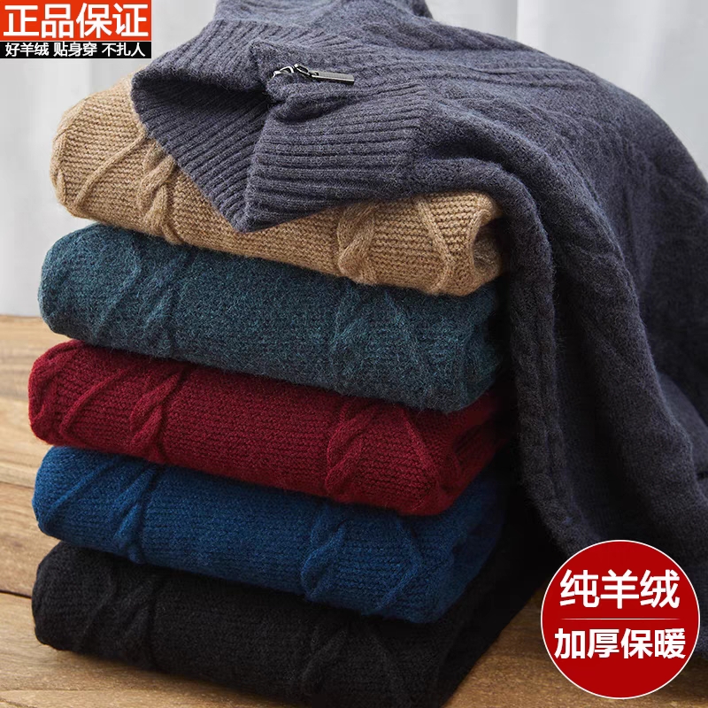 鄂尔多斯市100山羊绒男加厚半高立领拉链冬季毛衣中年打底羊毛衫