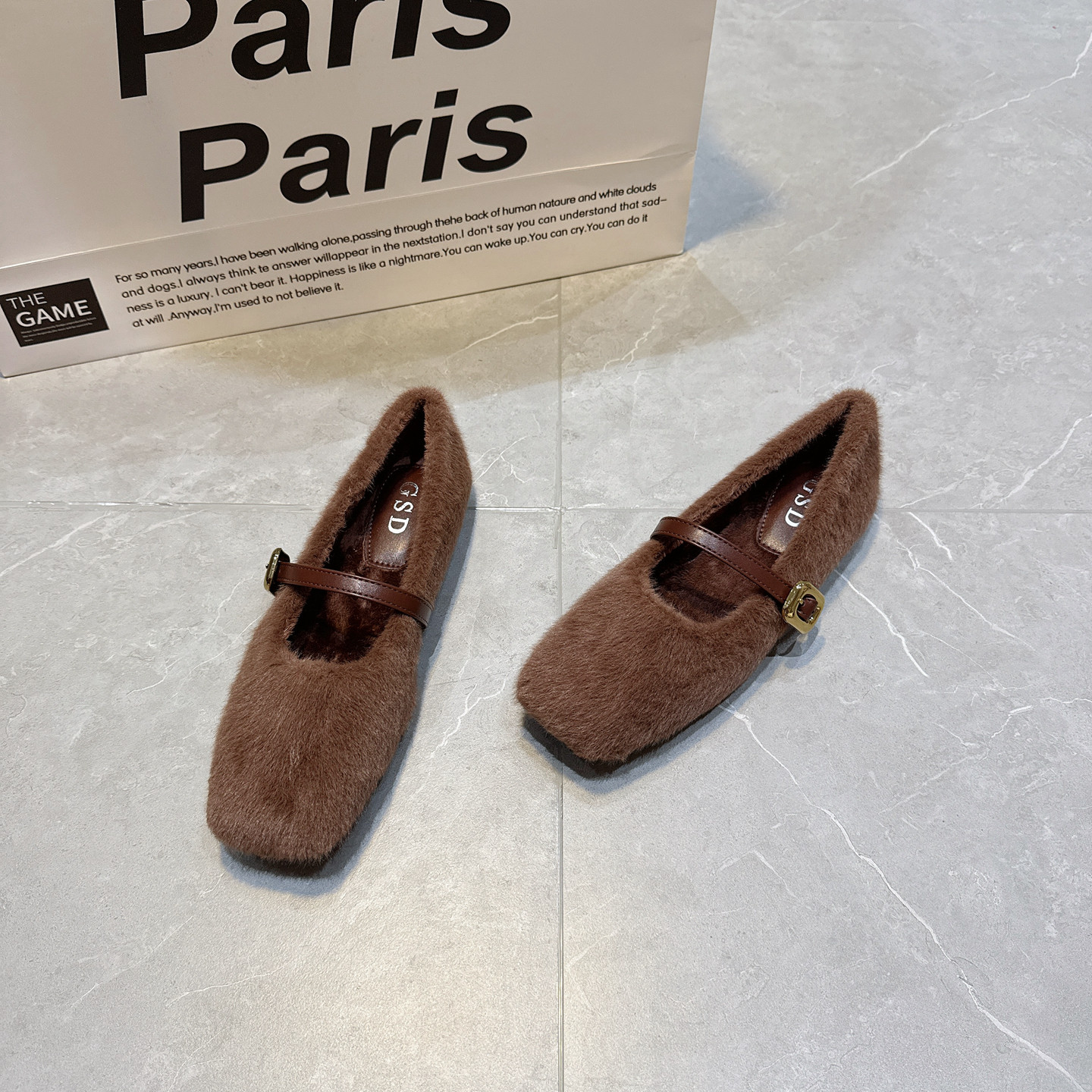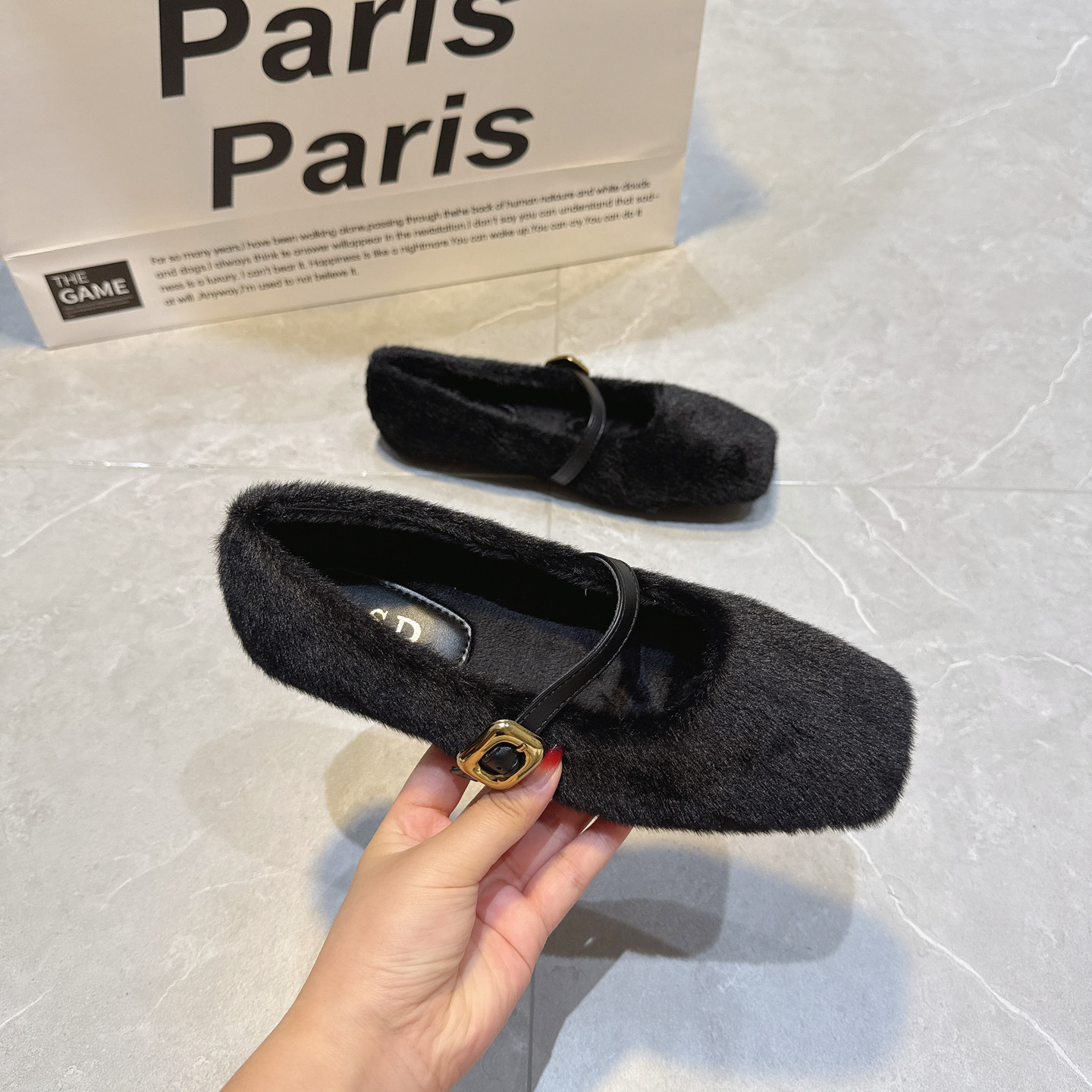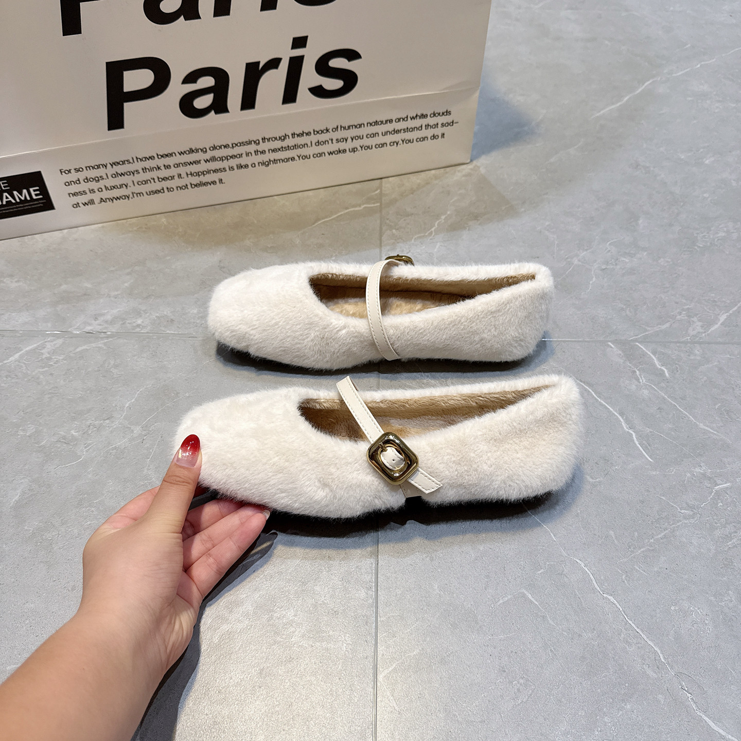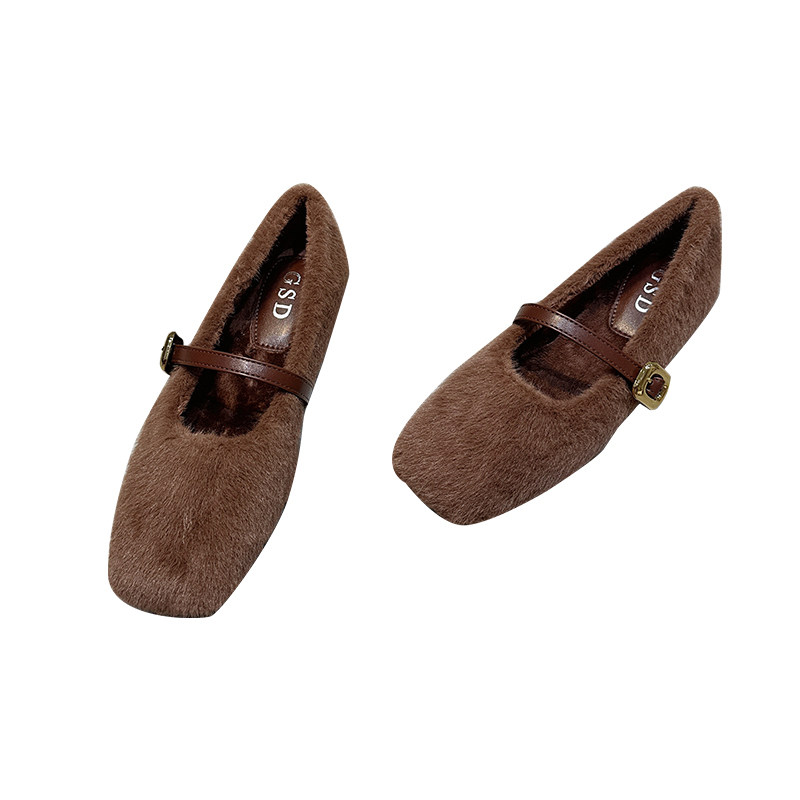 秋冬加绒毛毛鞋女款2025新款一字扣玛丽珍鞋保暖棉鞋温柔豆豆单鞋