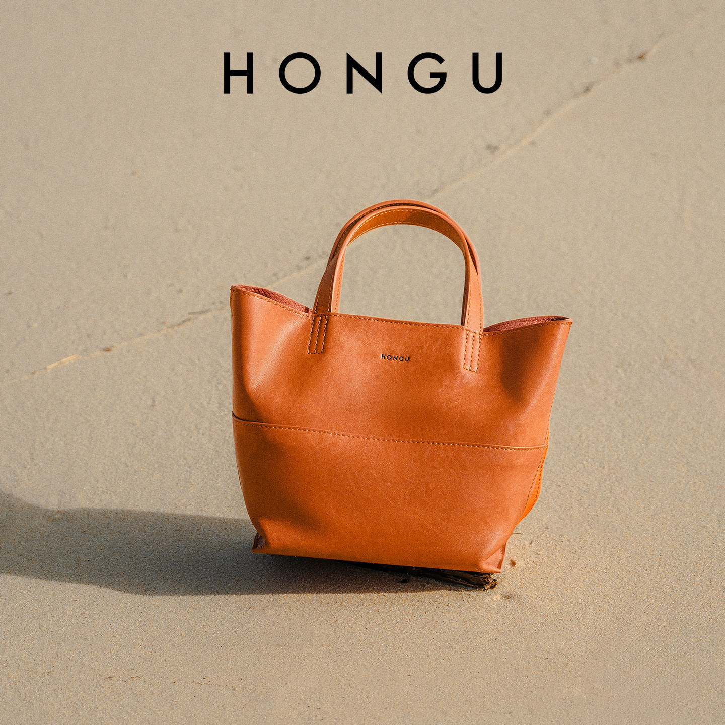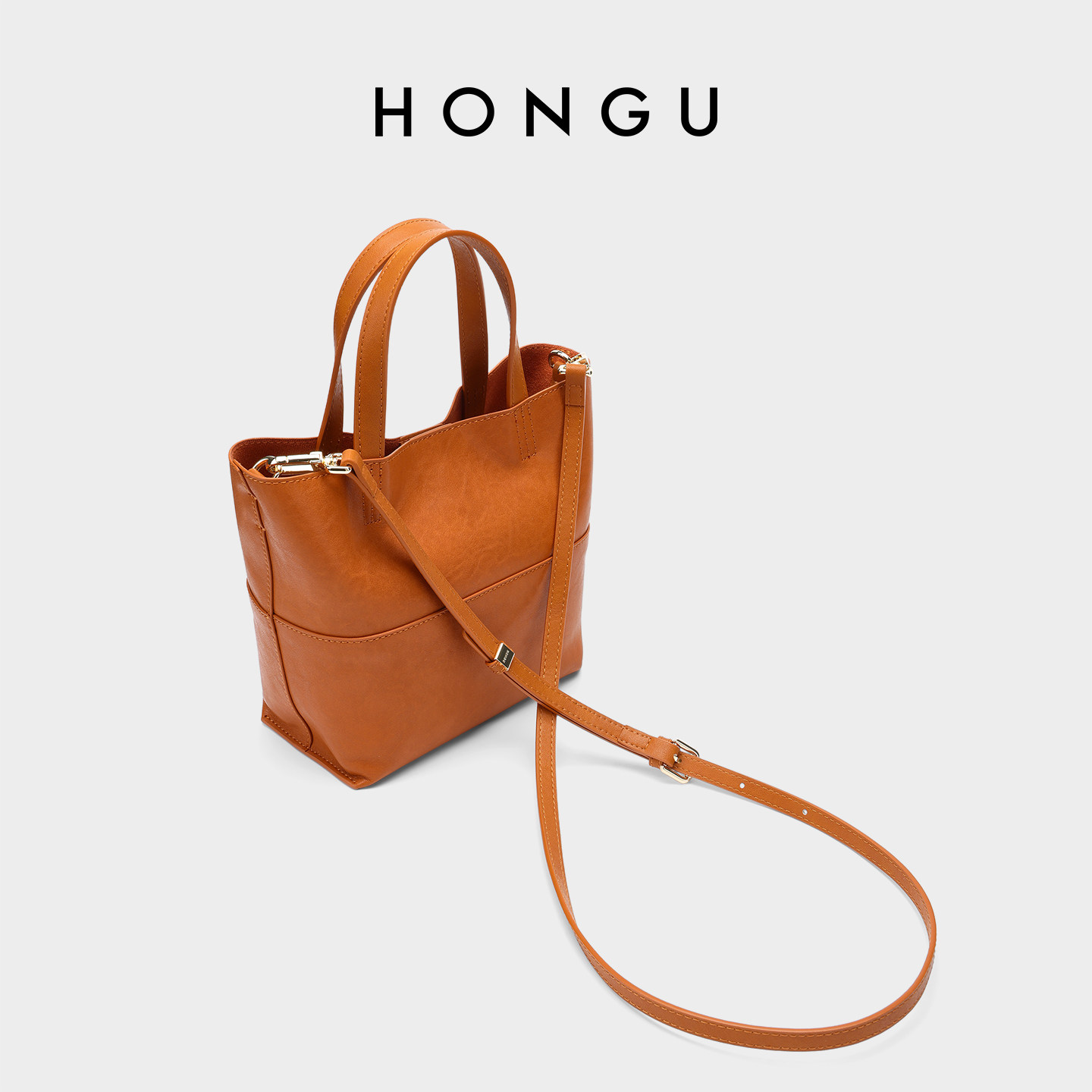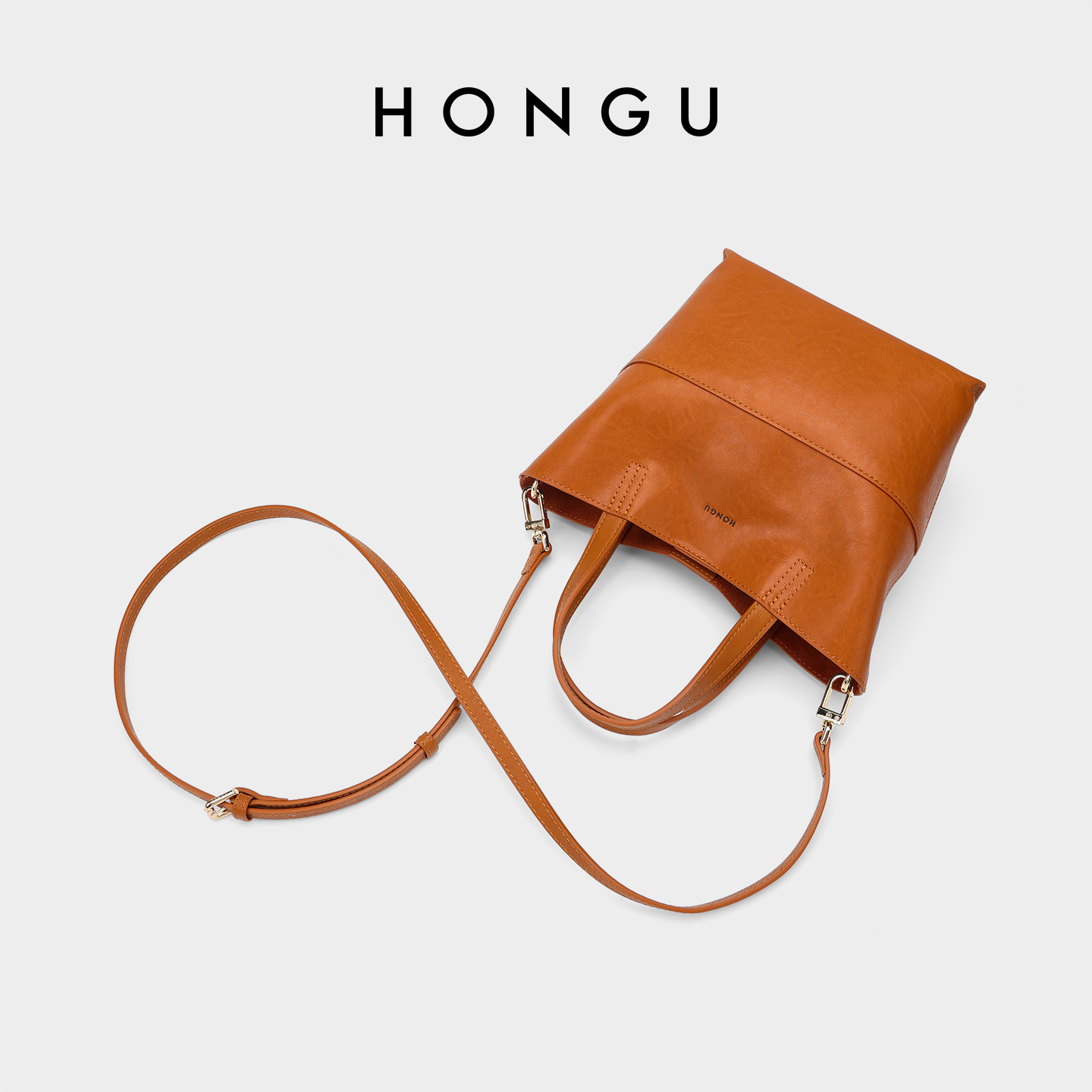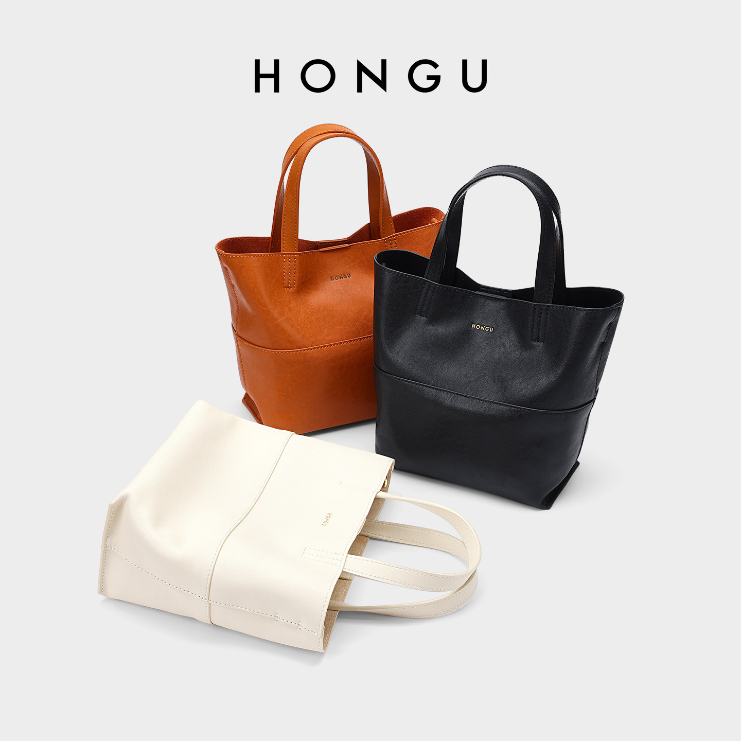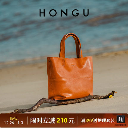 HONGU/红谷新款女士包包简约百搭手提袋菜篮子包真皮休闲水桶包女