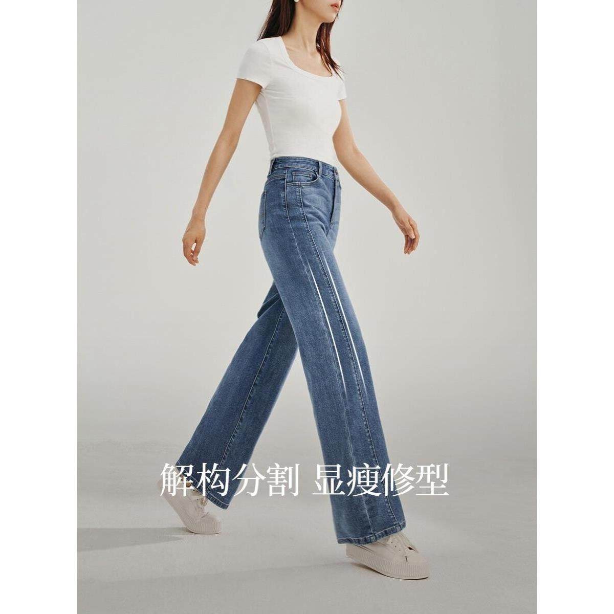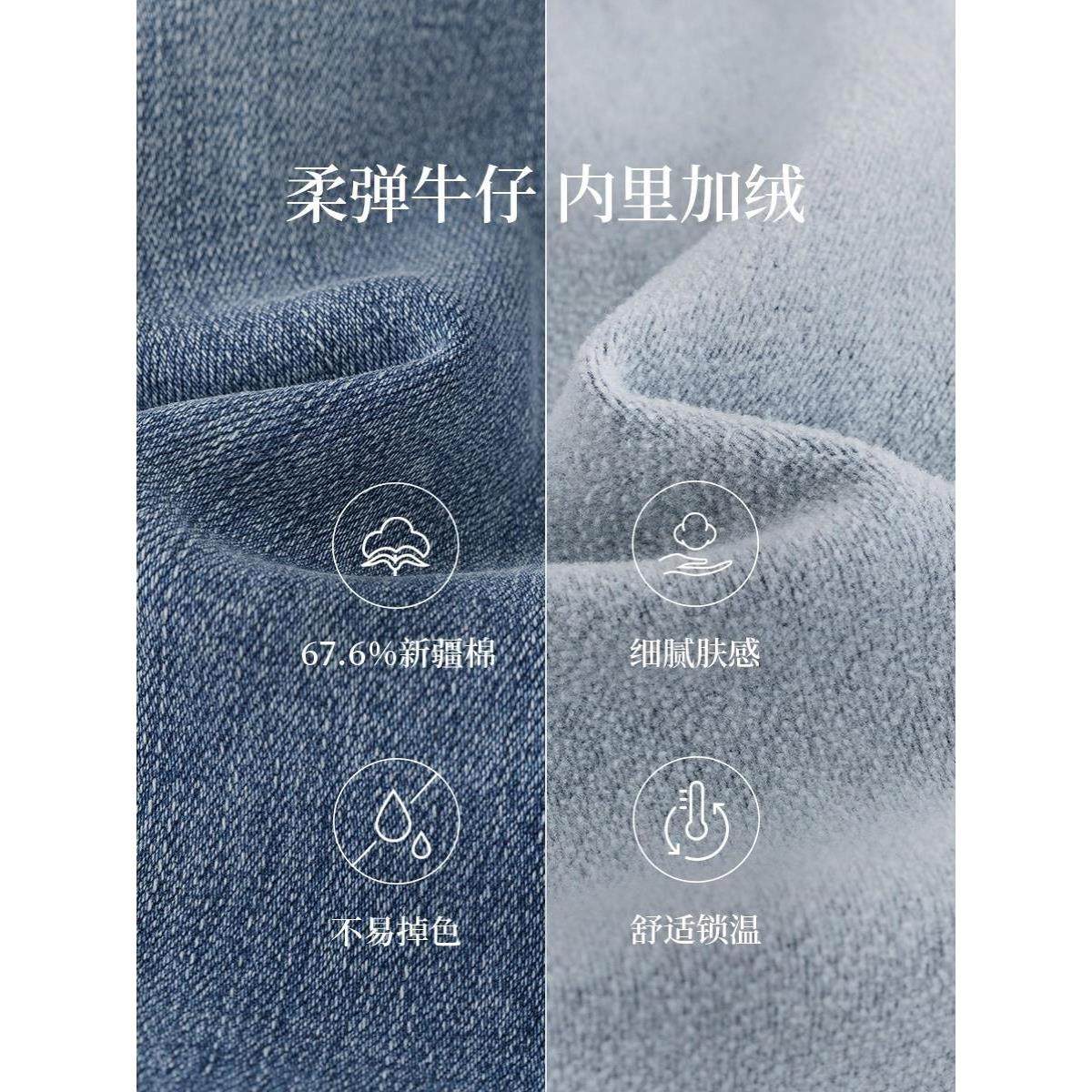 清仓直筒加绒牛仔裤女2025年冬季新款复古蓝高腰显瘦阔腿长裤子