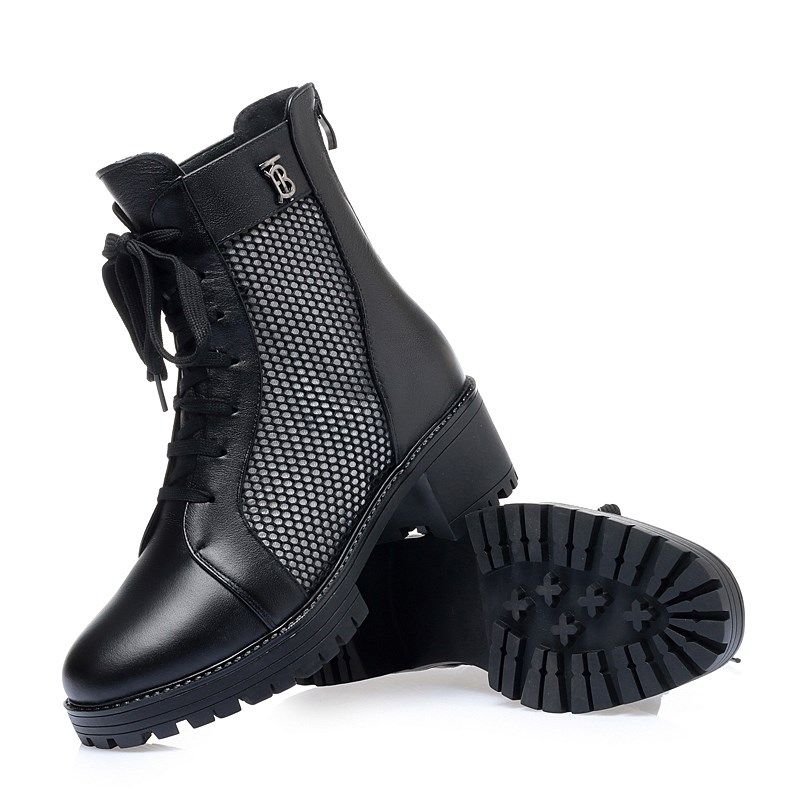 春夏季女靴网纱j马丁靴女真皮短靴粗跟镂空靴春秋单靴系带包头凉