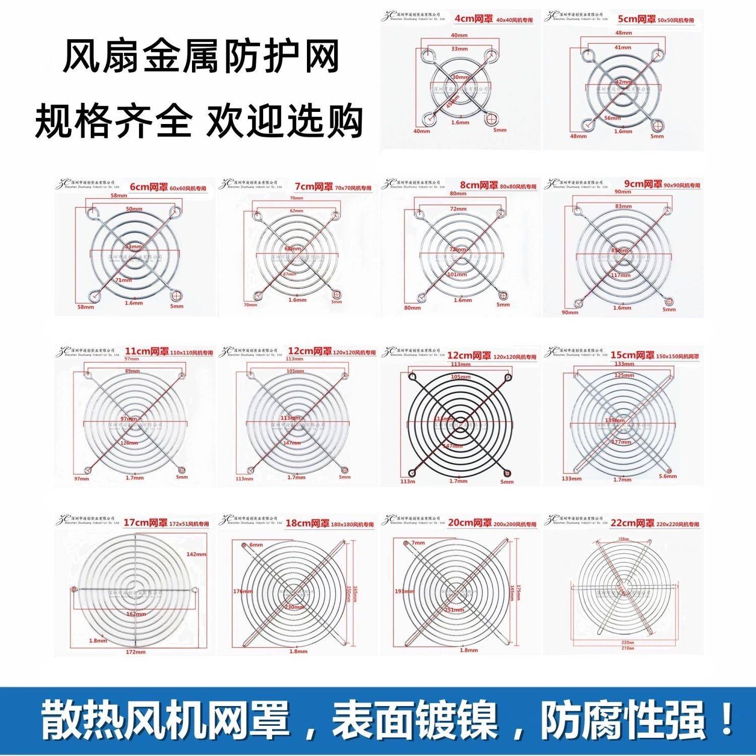 4/5/6/7/8/9/11/12/15/17/18/20/22cm散热风扇防护网金属铁网罩
