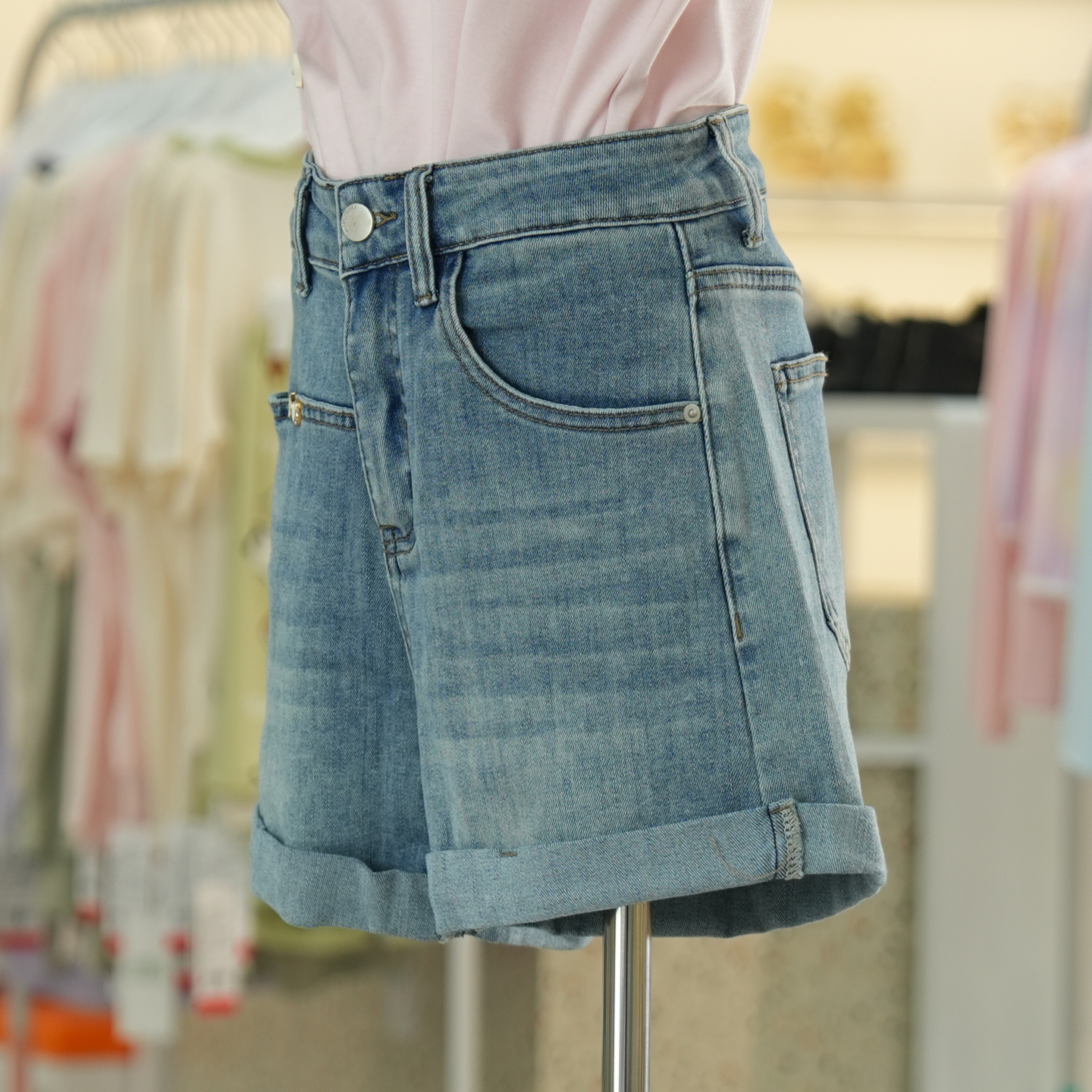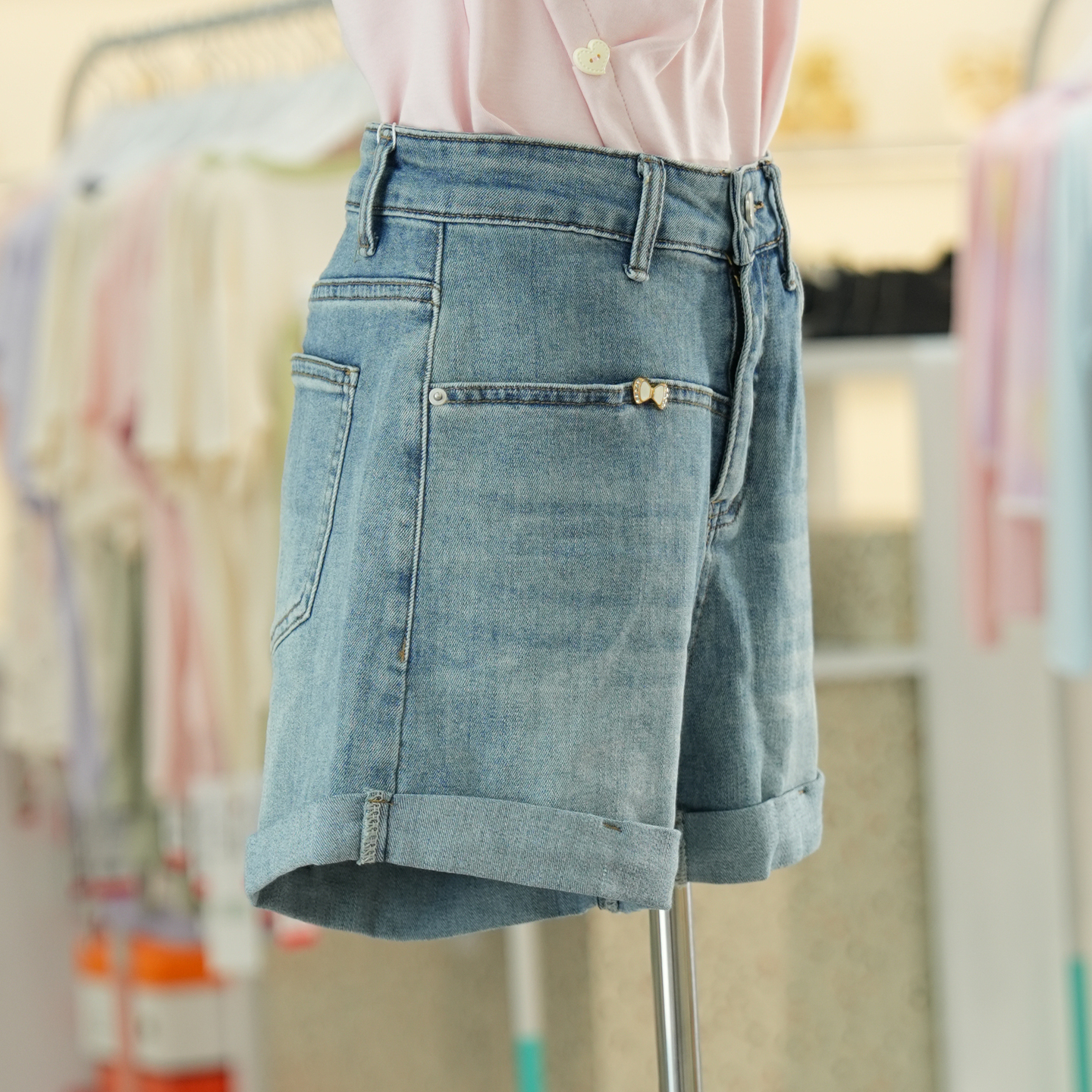 高腰显瘦宽松百搭阔腿短裤女夏季小个子设计感翻边牛仔哈伦裤热裤