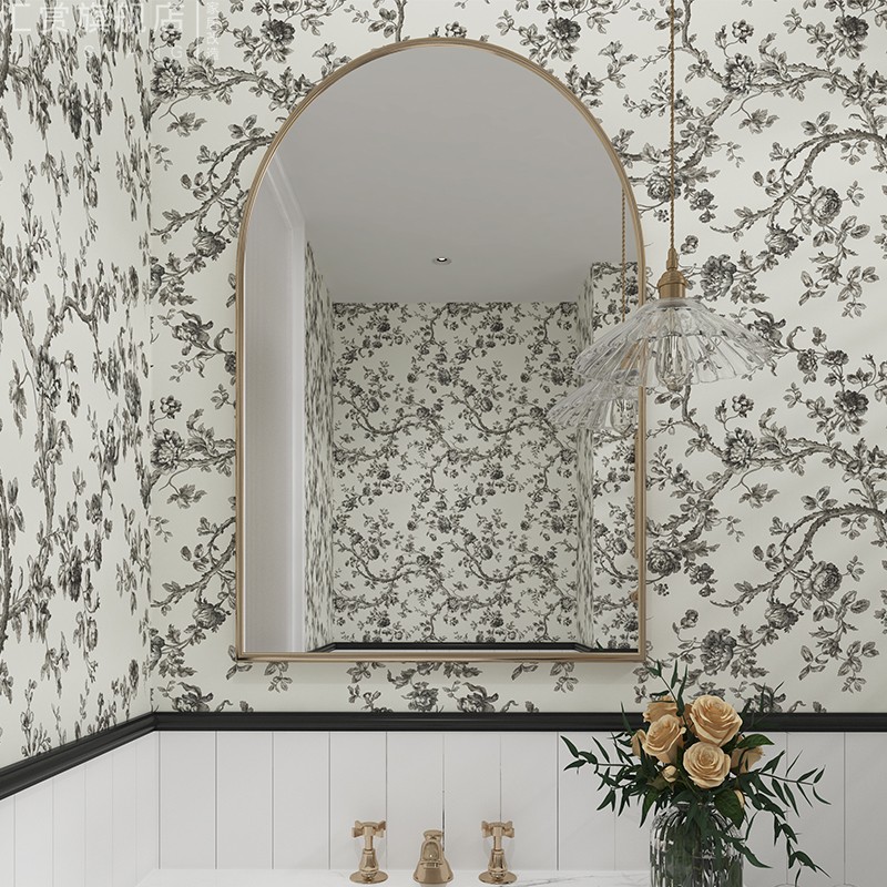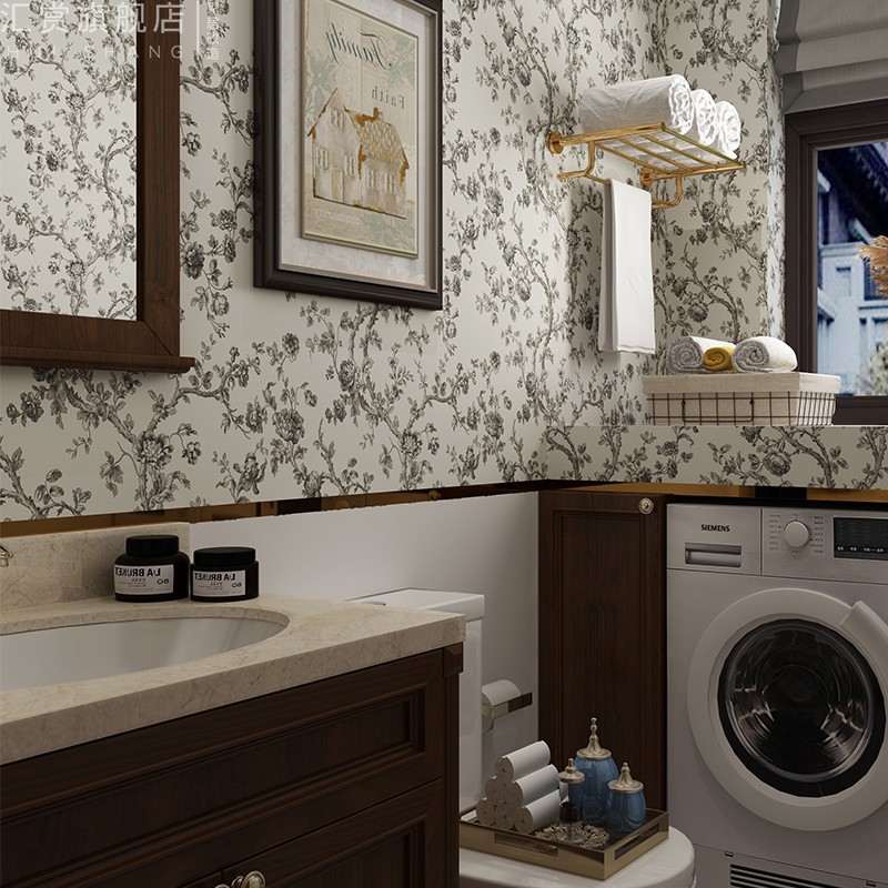 卫生间防水墙贴美式田园墙纸复古乡村自粘壁纸背景墙厨房防油贴纸