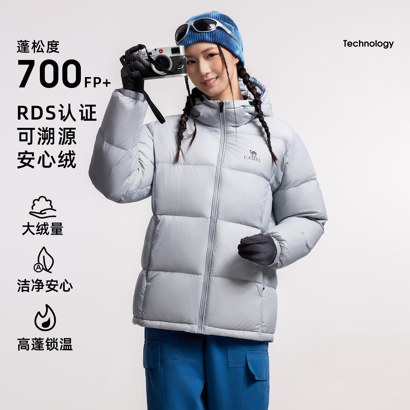 骆驼运动羽绒服男女短款冬季防风加厚保暖90白鸭绒面包服外套上衣