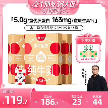 【交个朋友38大促】隔壁刘奶奶水牛配方纯牛奶*3箱