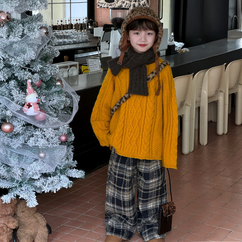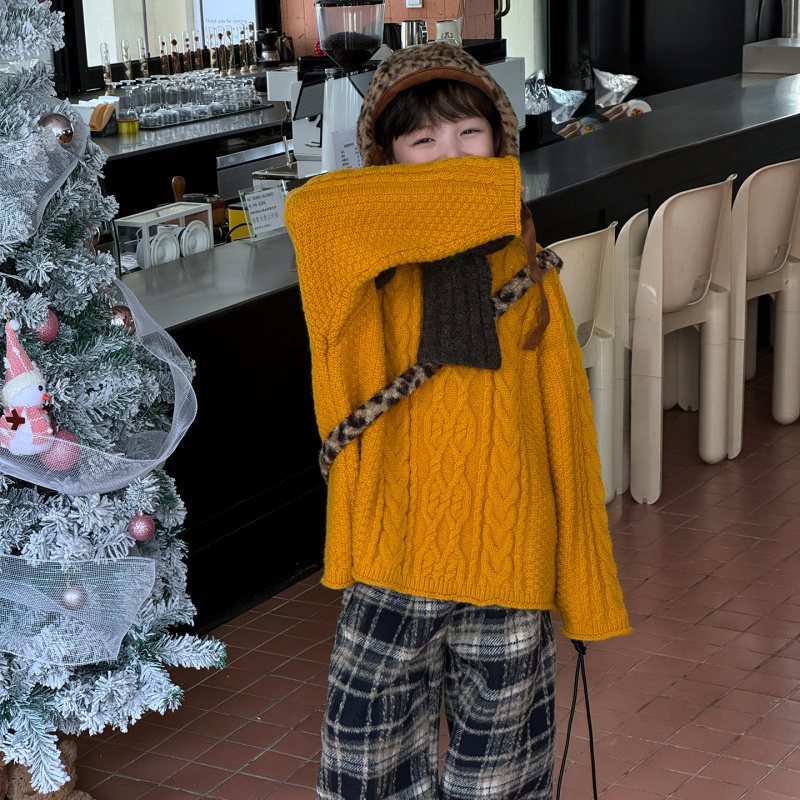 2025男童冬款韩版绞花中大童针织衫卷边宽松加厚保暖儿童毛衣
