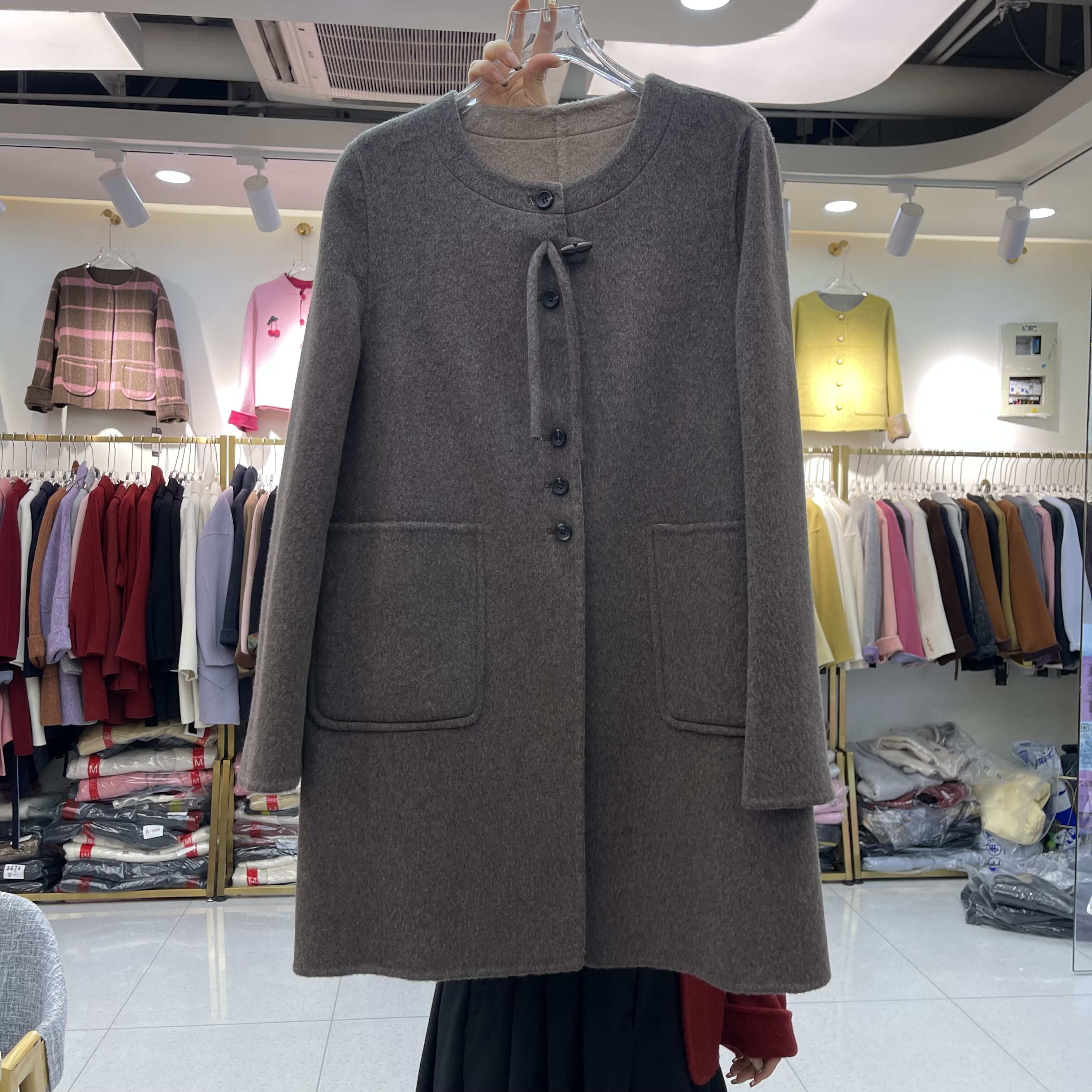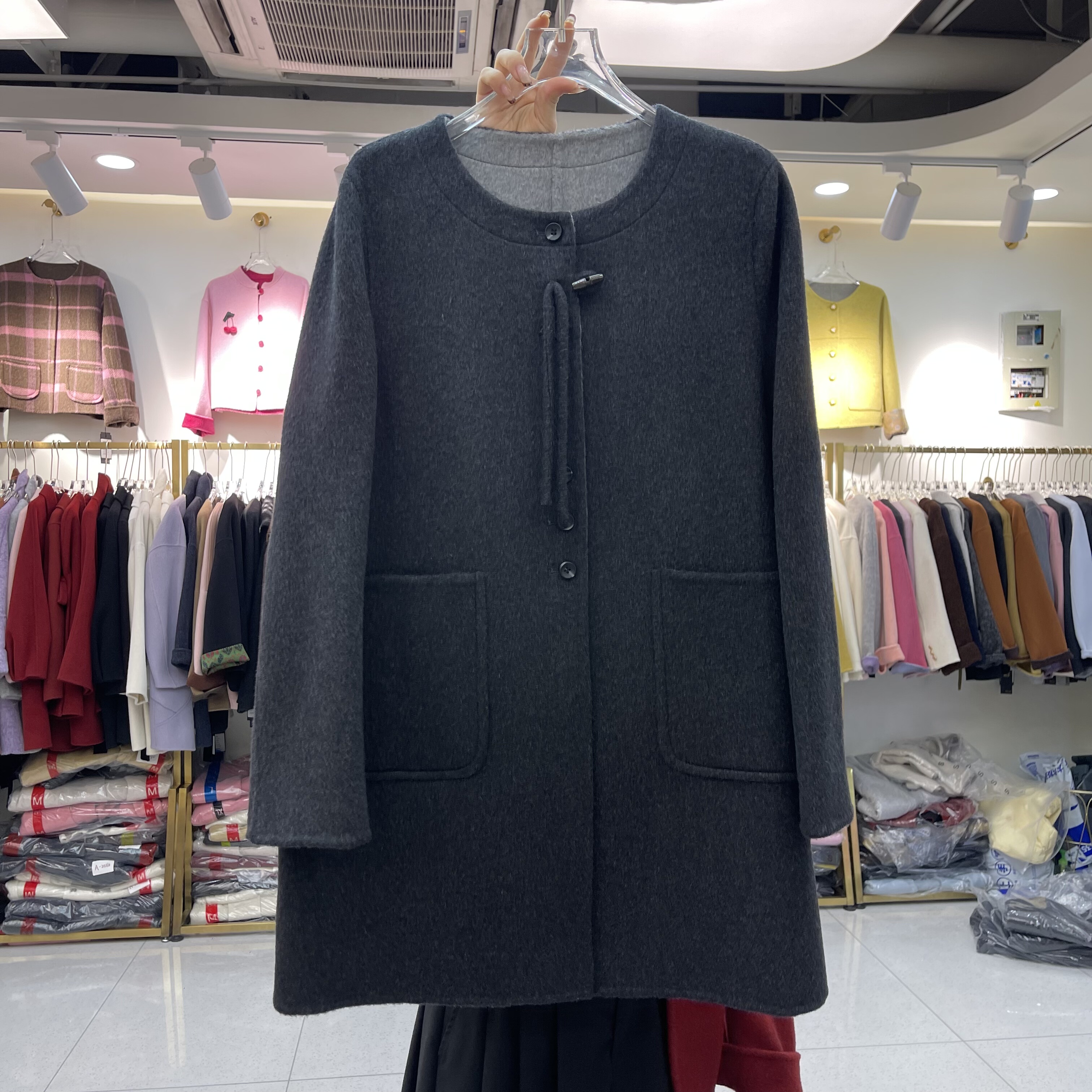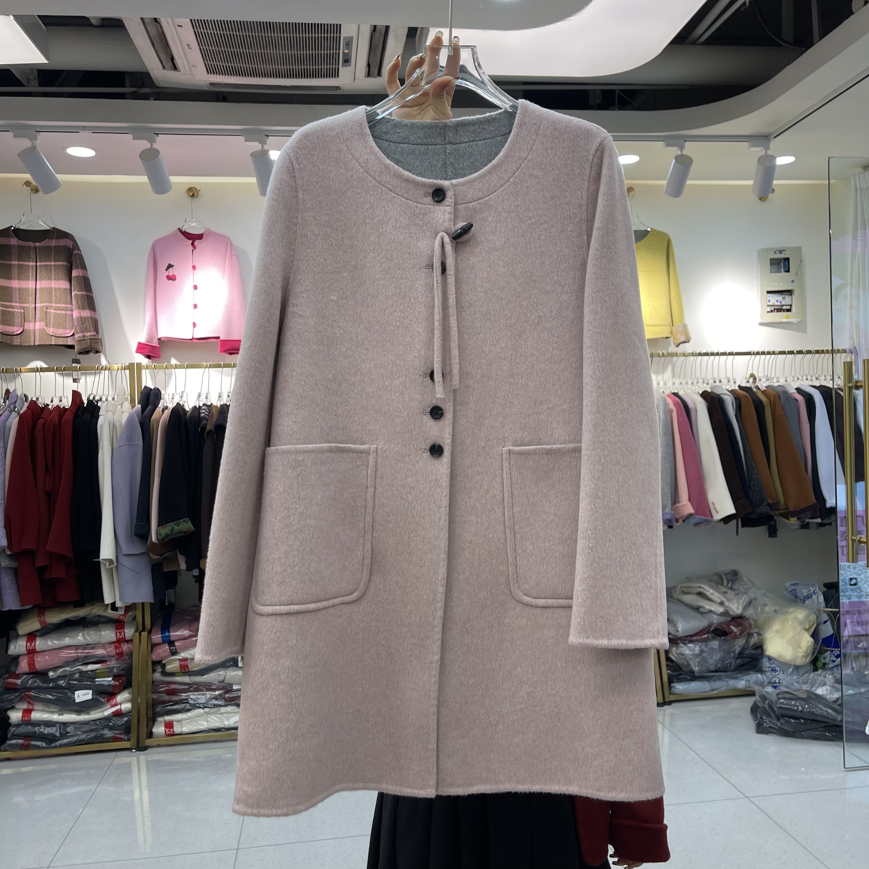 圆领双面羊绒大衣2025冬季新款韩版宽松显瘦中长款女羊毛呢外套